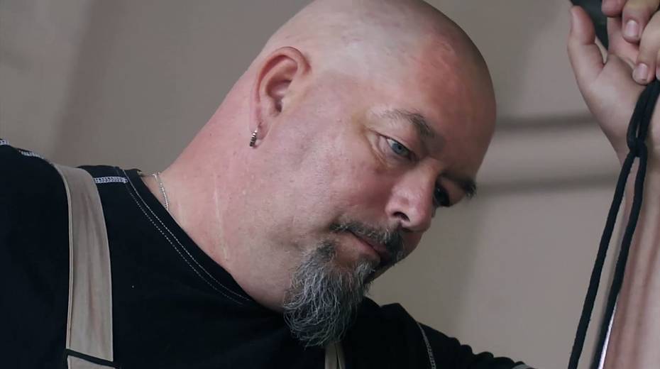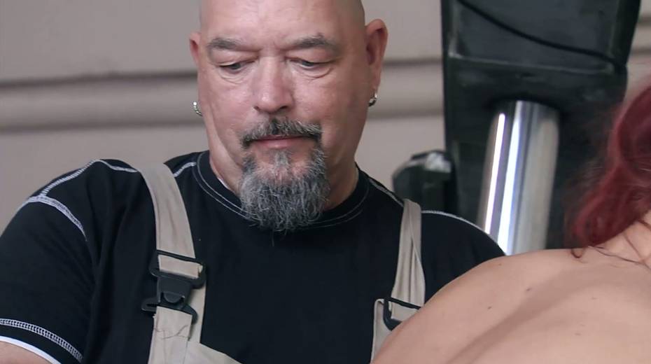 Bald headed pervert enjoys watching how two bitches fuck each other