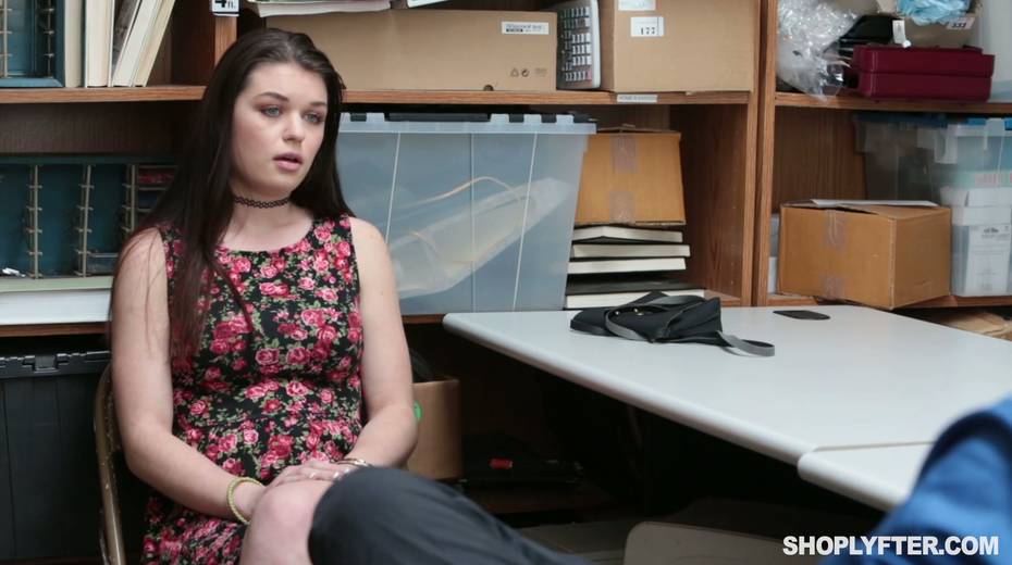 Arrested bitch Anastasia Rose is undressing during interrogation