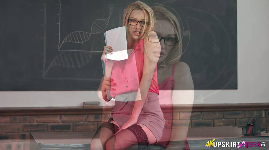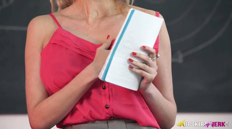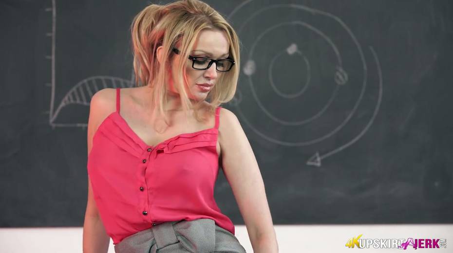 Perverted teacher wearing short skirt Amber Jayne shows her pussy