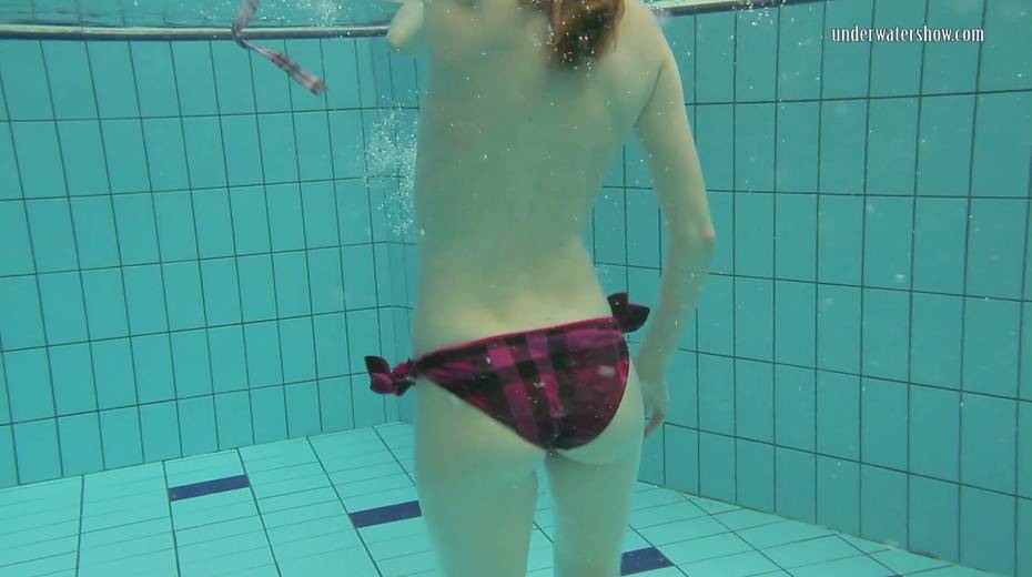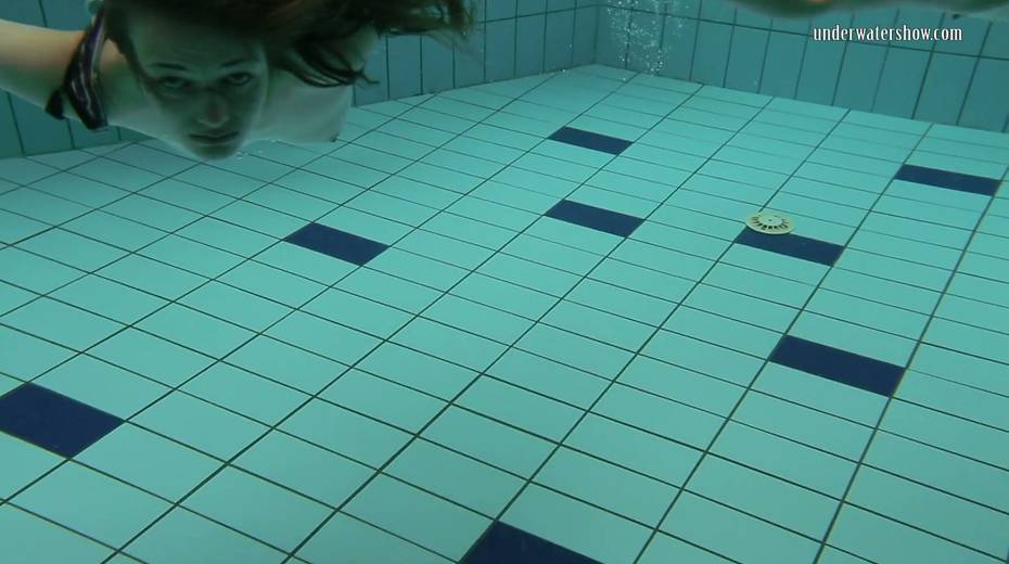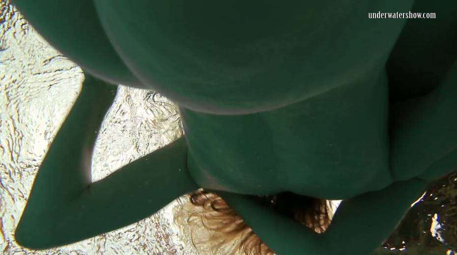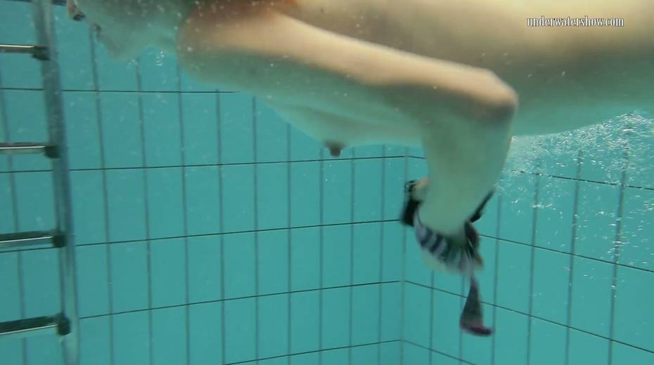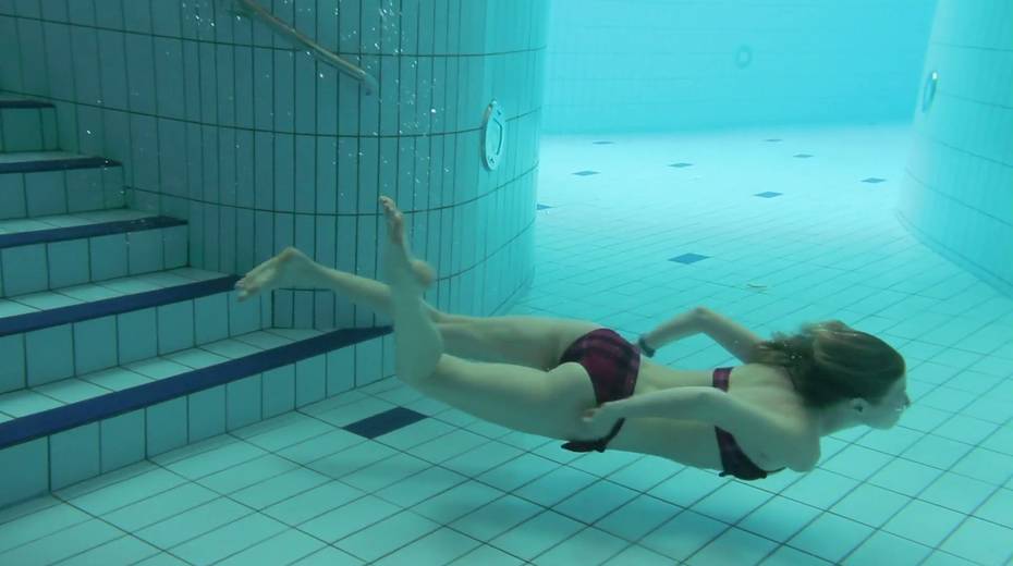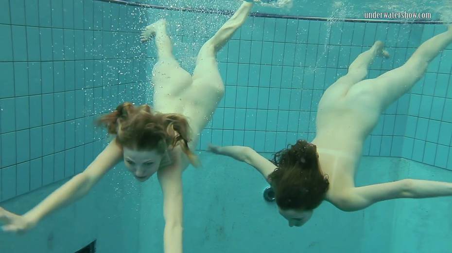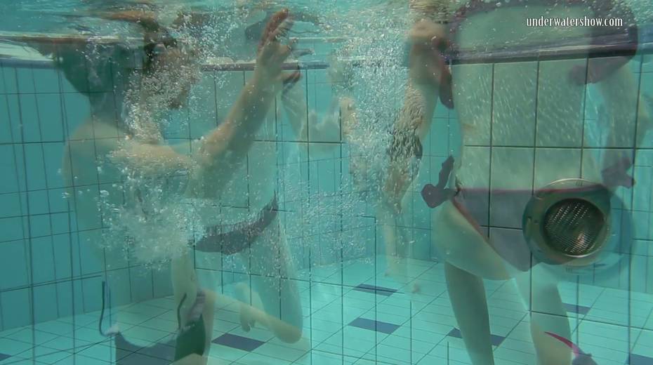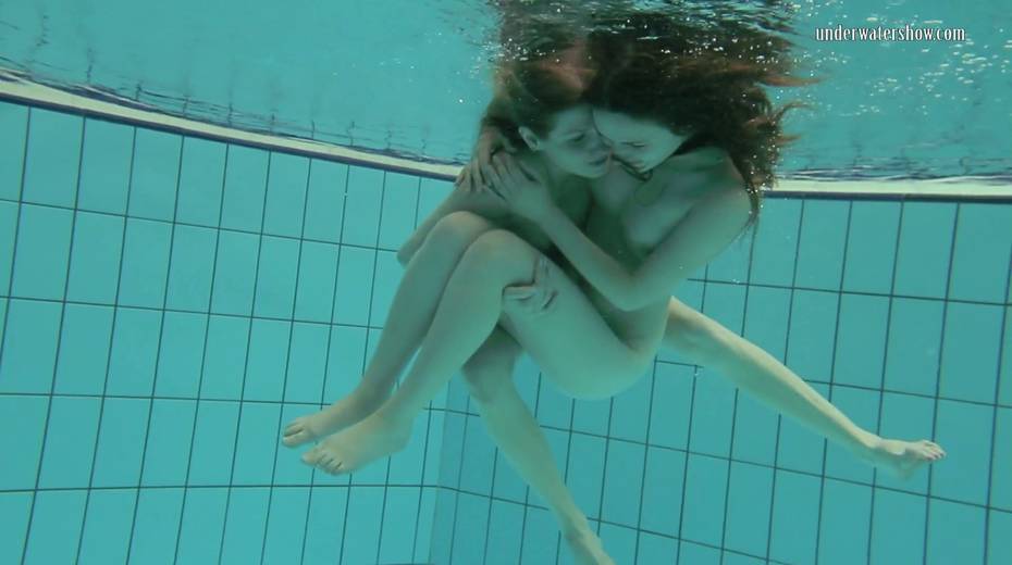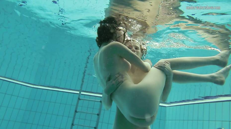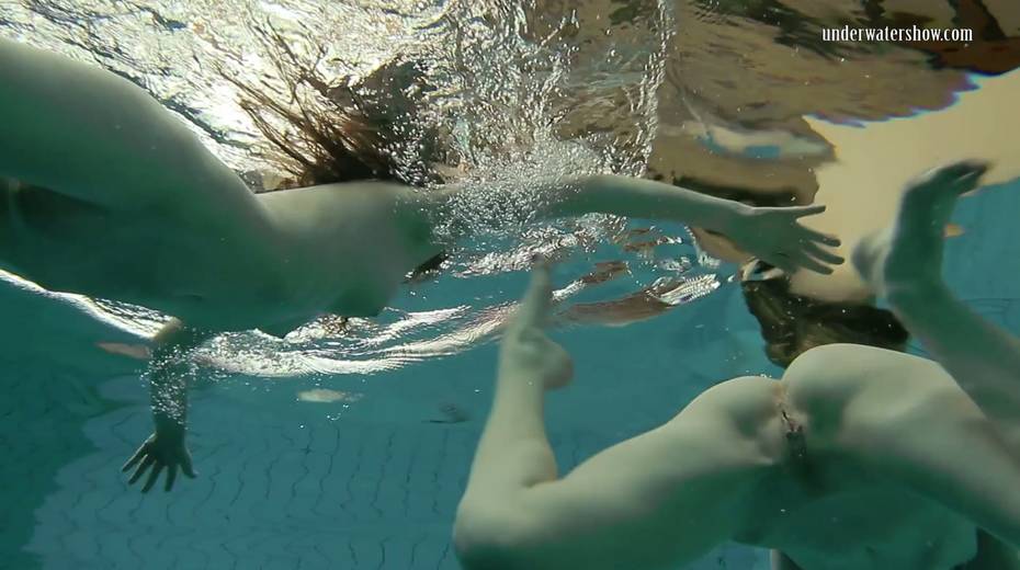 Two swimming babes undress under the water and do tricks