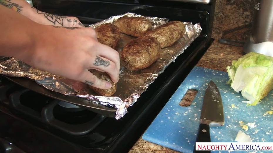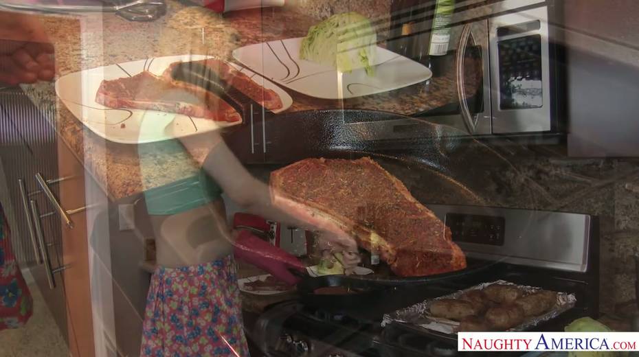 Perfect housewife Emma Mae rides her man after delicious dinner