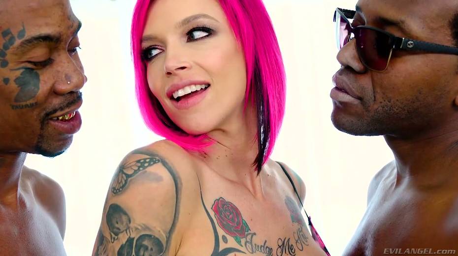 Pink haired porn model Anna Bell Peaks and her nasty GF are fucked by BBC
