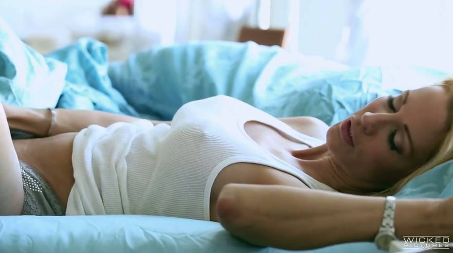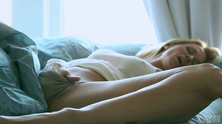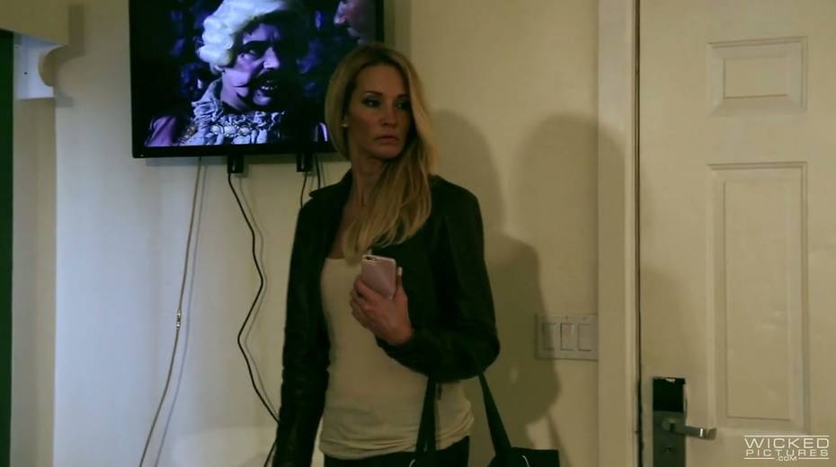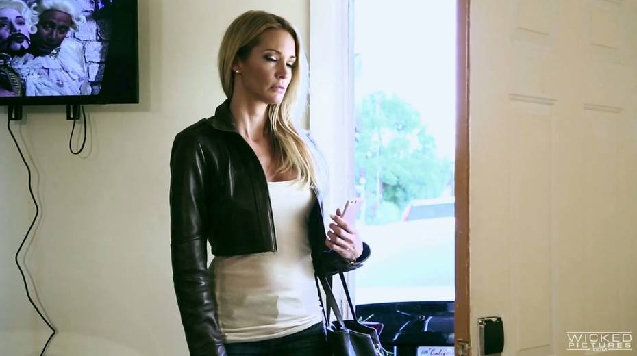 Blonde enjoys watching how her bald headed dude fucks big tittied Romi Rain