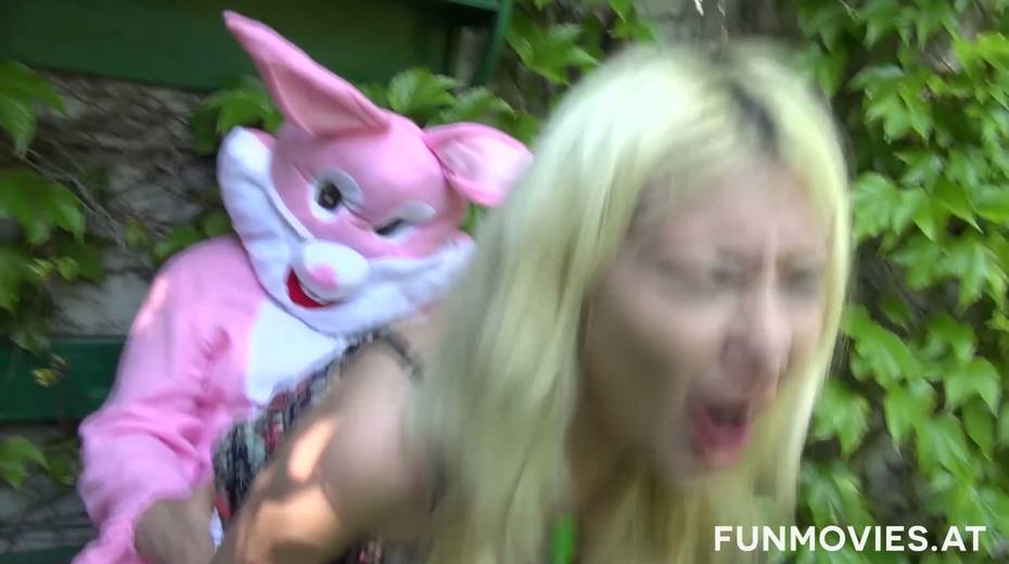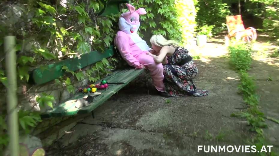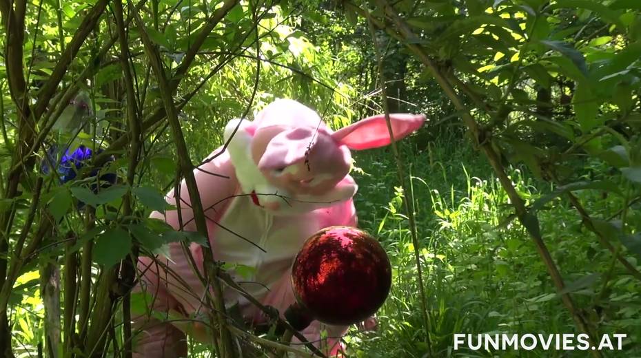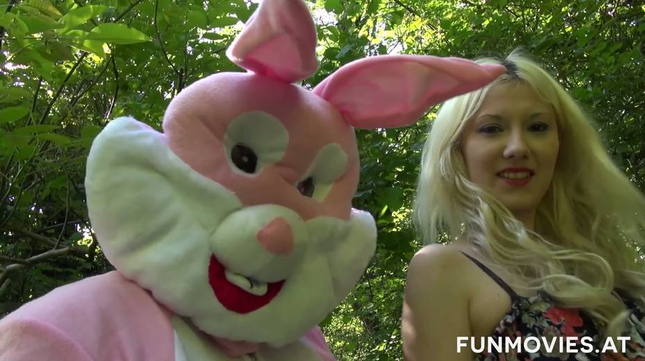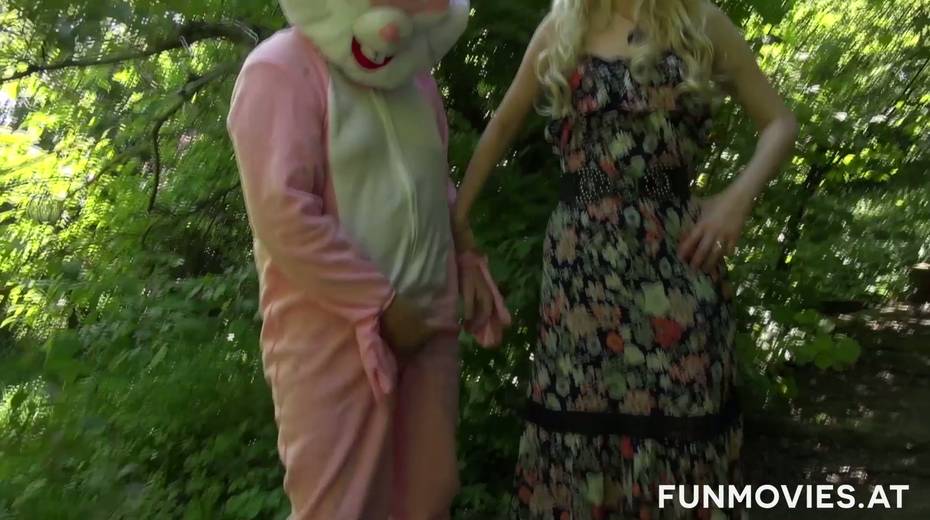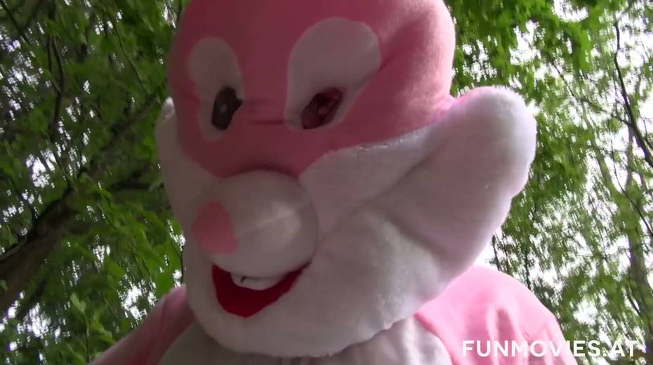 Masturbating babe Sarah Dark sucks hard dick of one dude in bunny costume