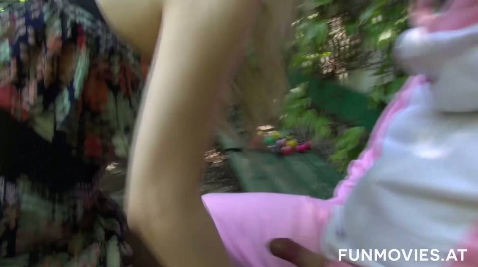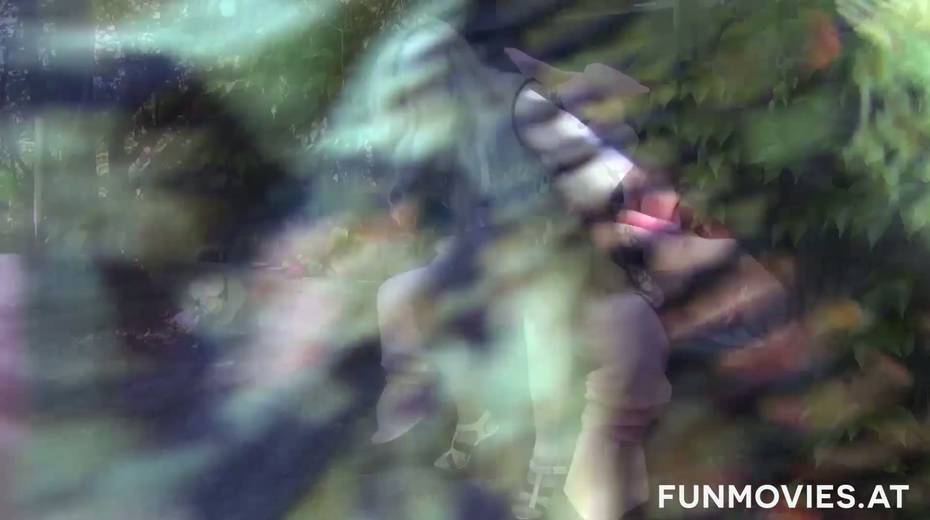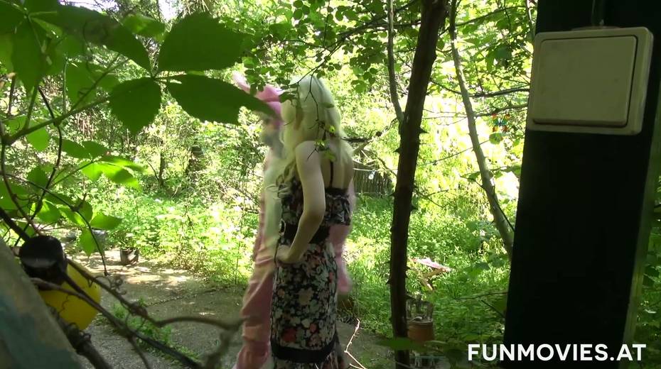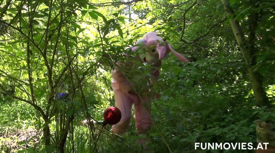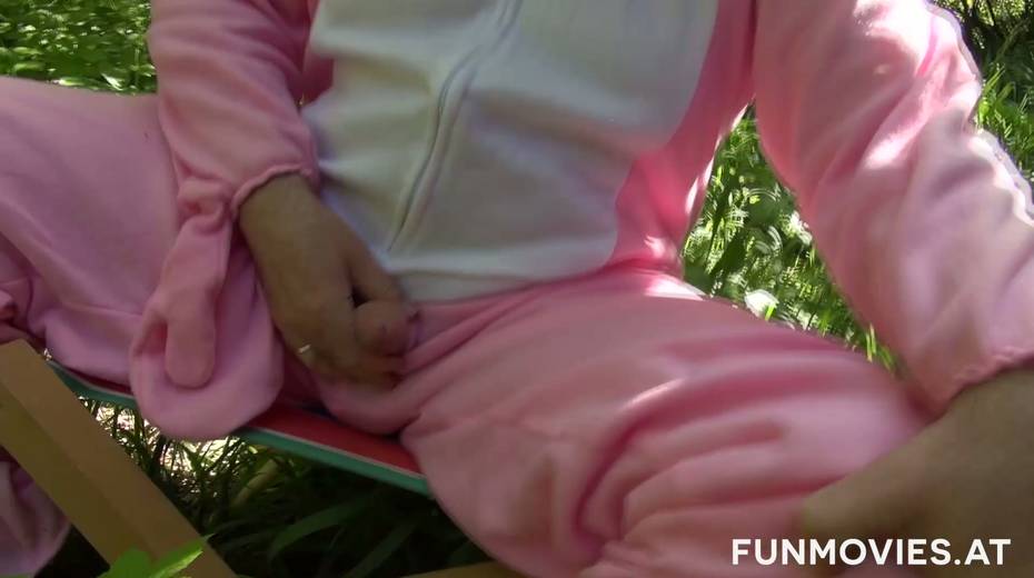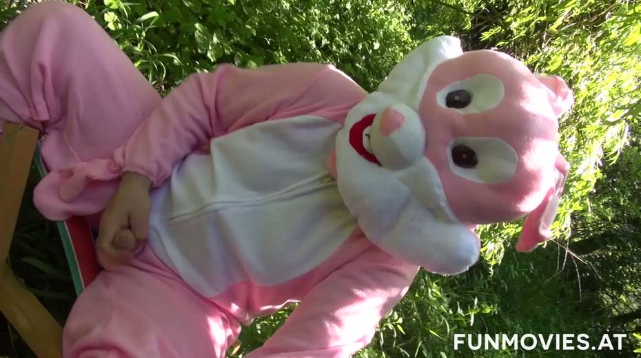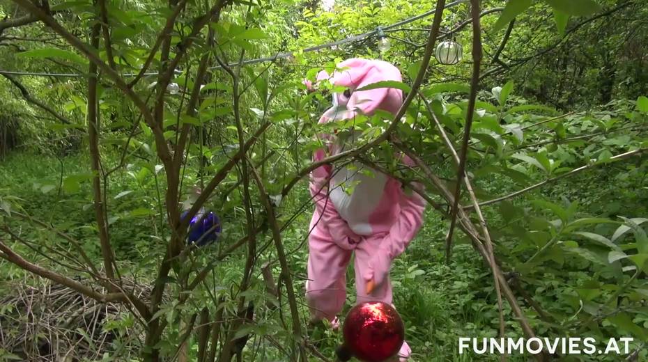 Masturbating babe Sarah Dark sucks hard dick of one dude in bunny costume