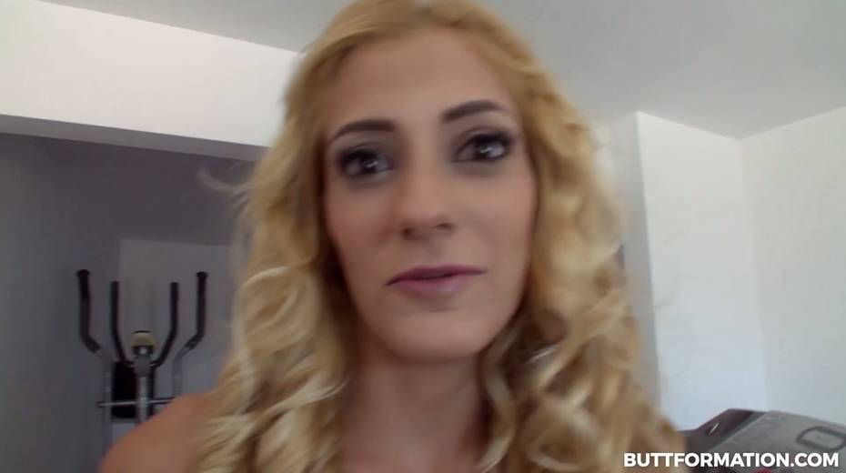 Flat chested blonde Gabriella Flores runs on a treadmill