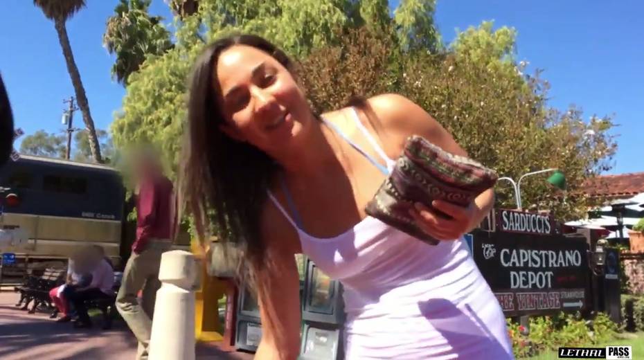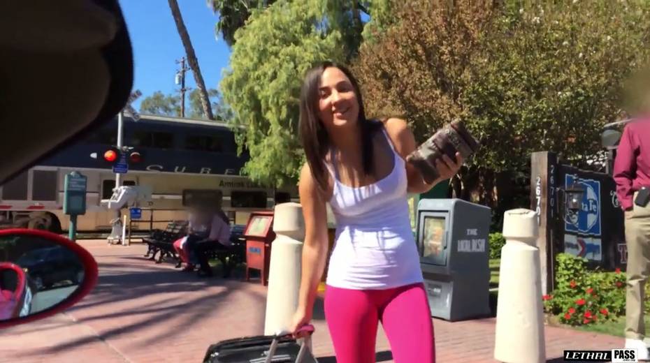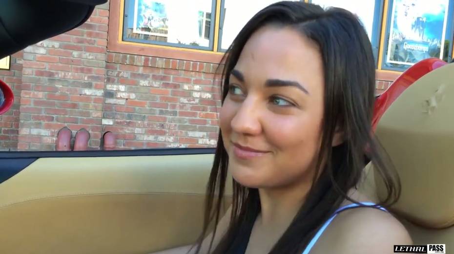 Yummy chick Amara Romani sucks hard penis standing on her knees