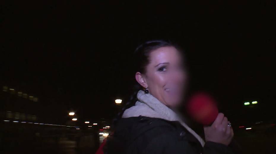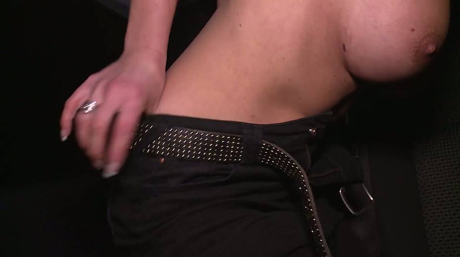 Slutty journalist Texas Patti is flashing big boobs before sex in the car