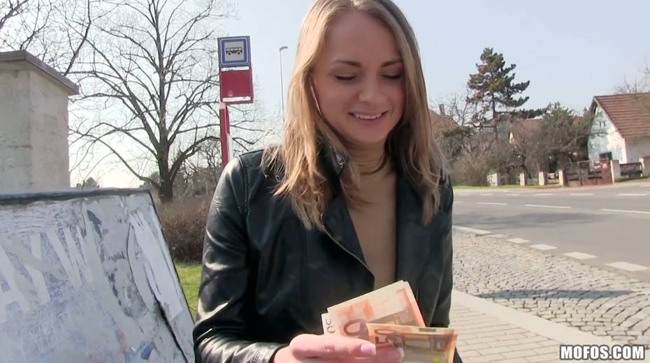 Slutty blonde Ivana Sugar is fucked hard for cash in broad daylight
