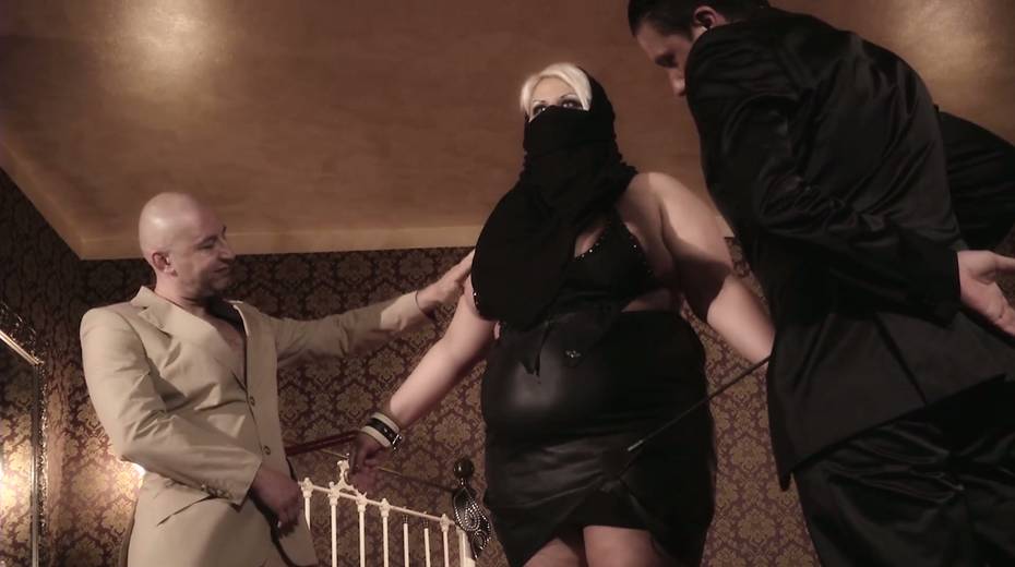 Two horny dudes fuck one sex-hungry SBBW and cum on her huge boobs