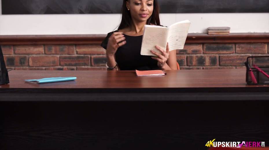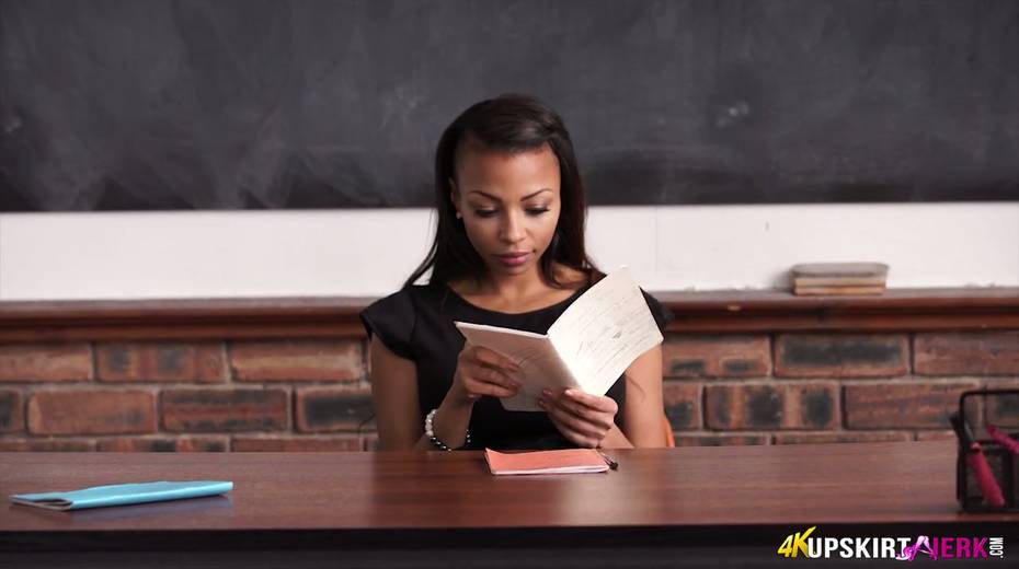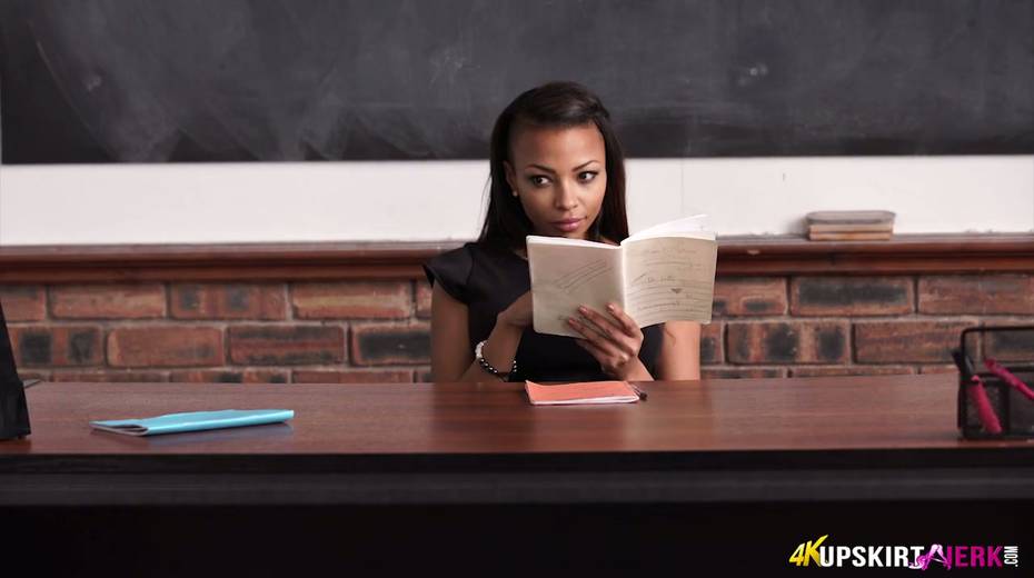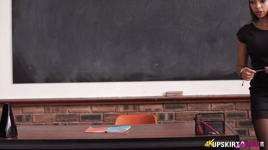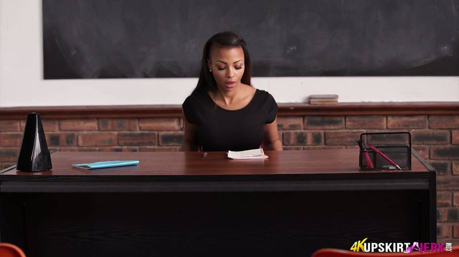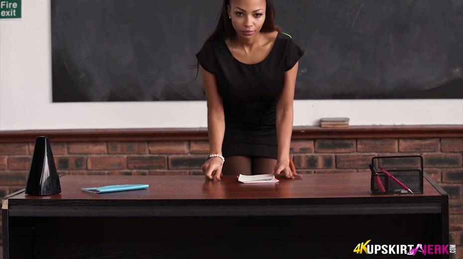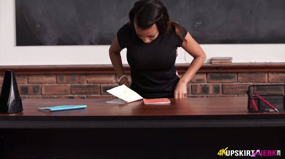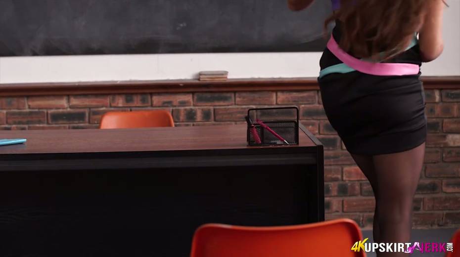 Pretty hot young teacher Ruby Summers shows upskirt during lecture