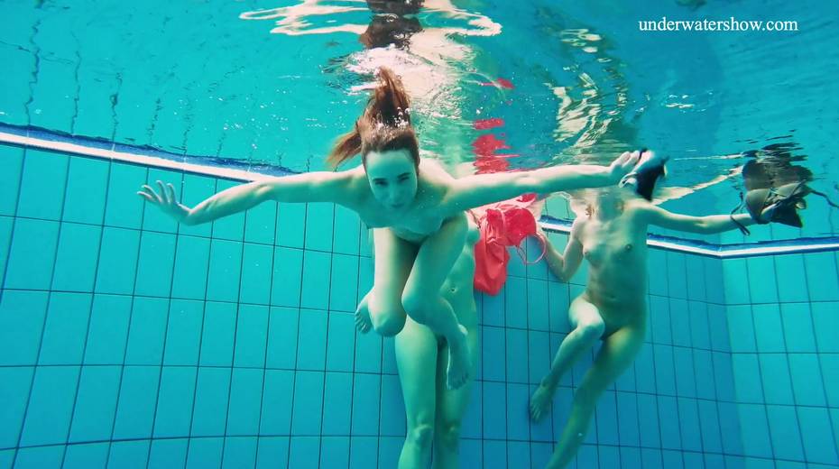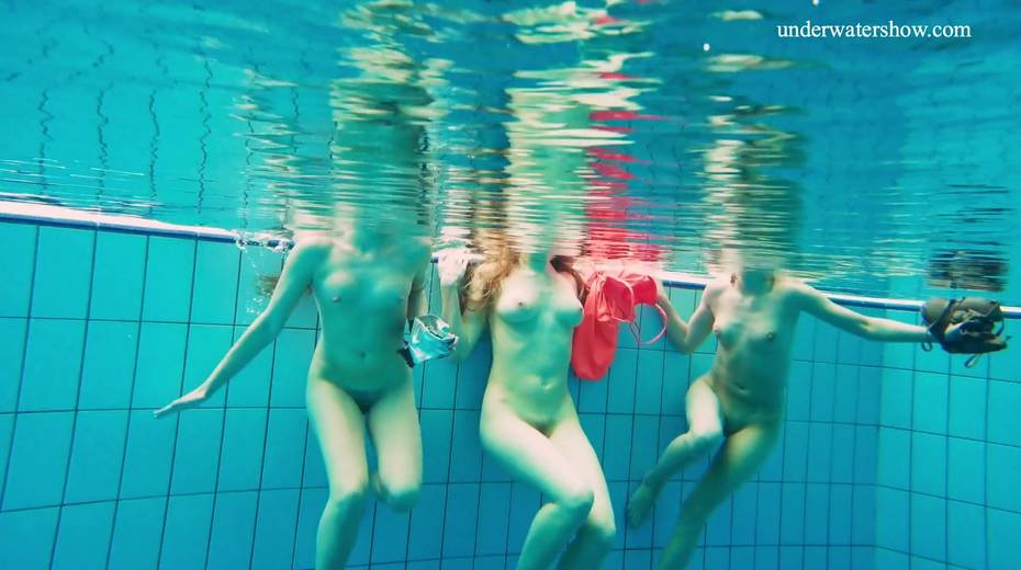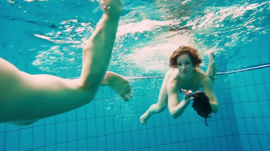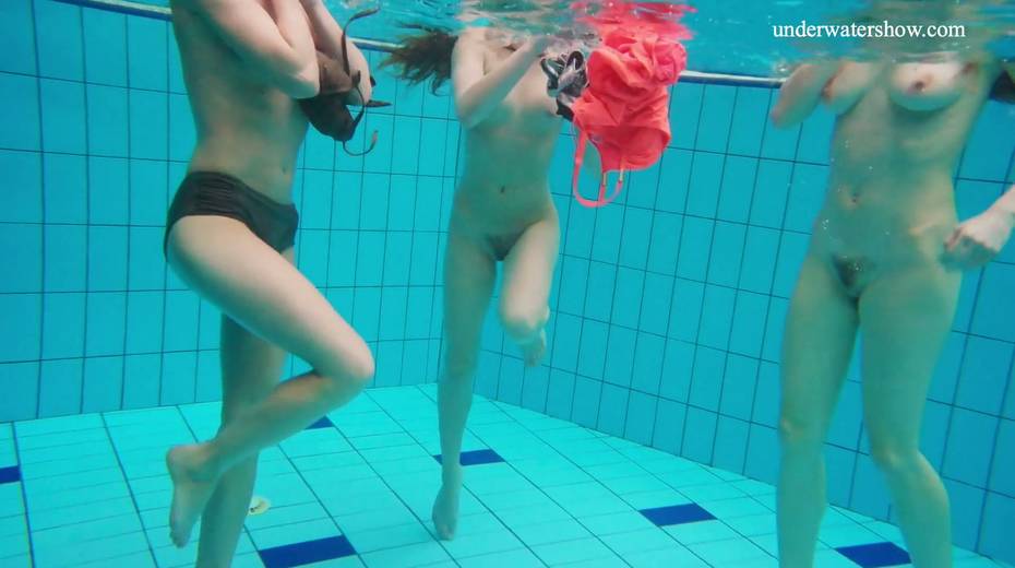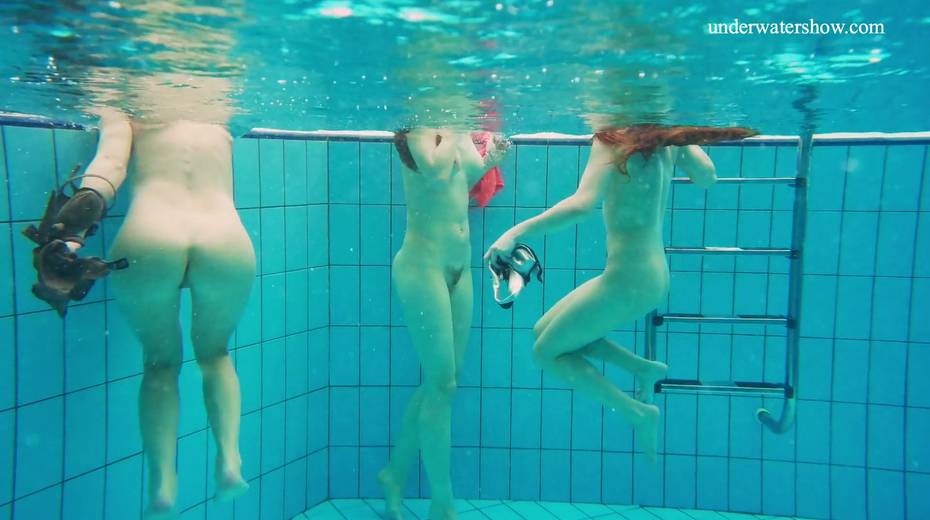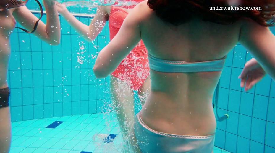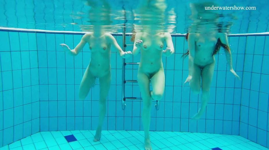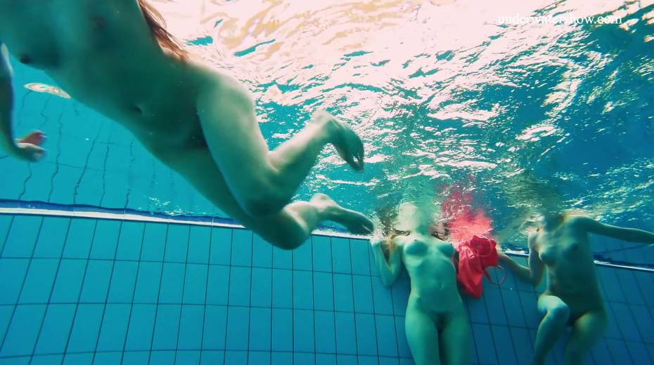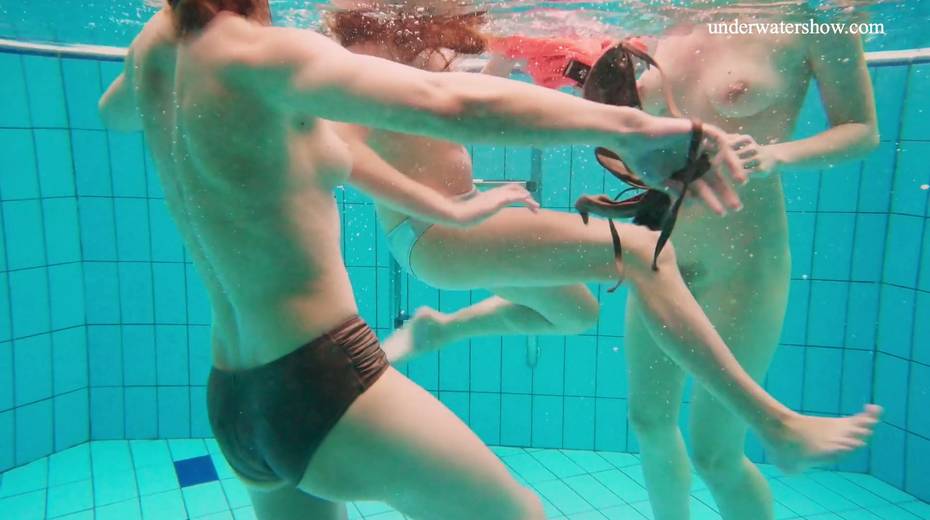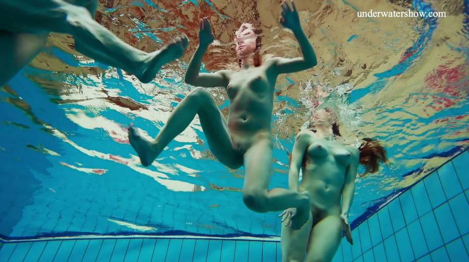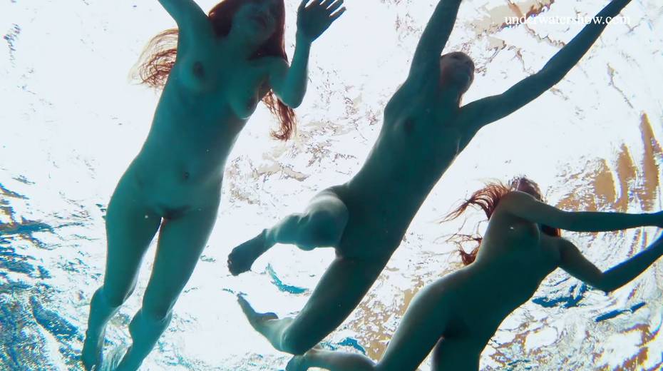 Nina Mohnatka and two ginger babes undress under the water