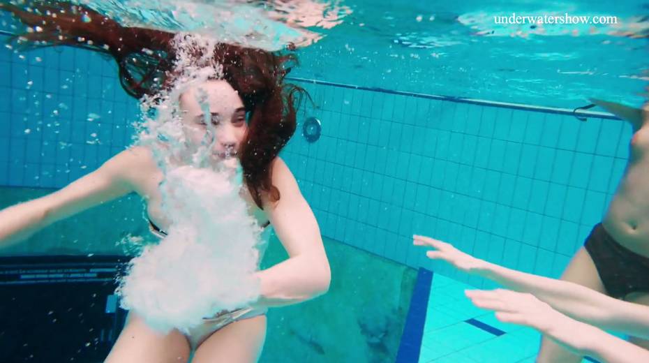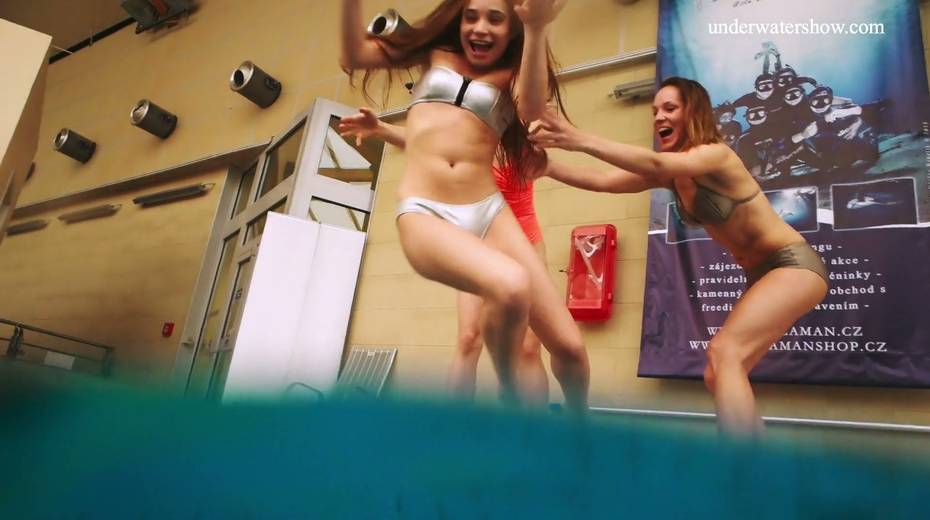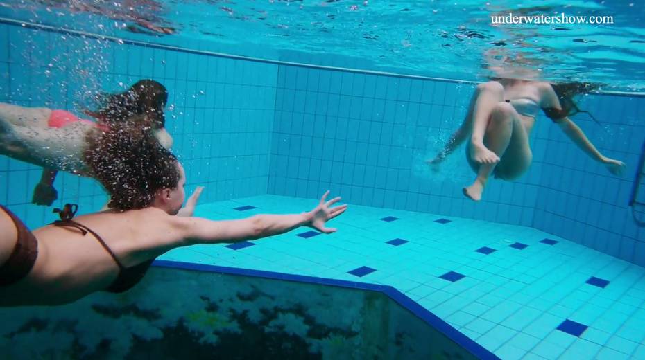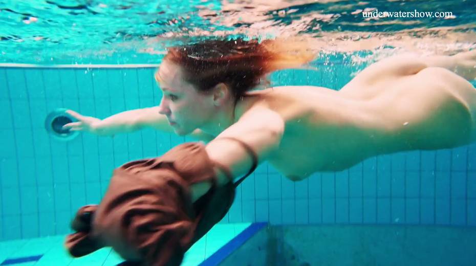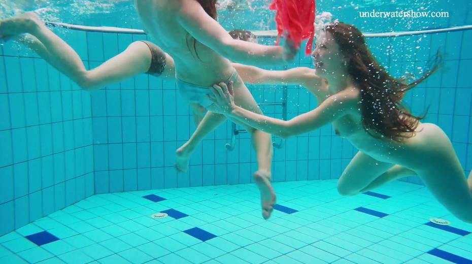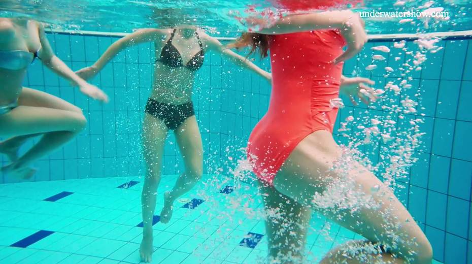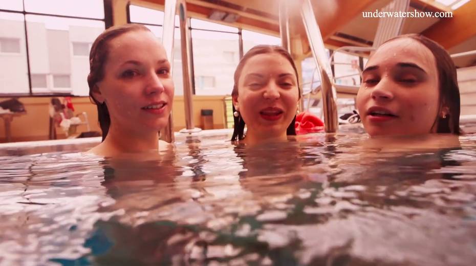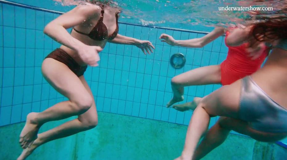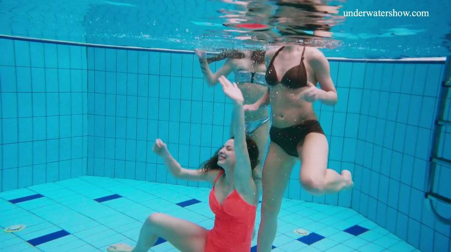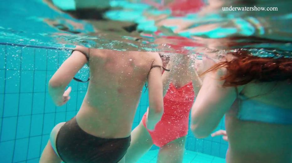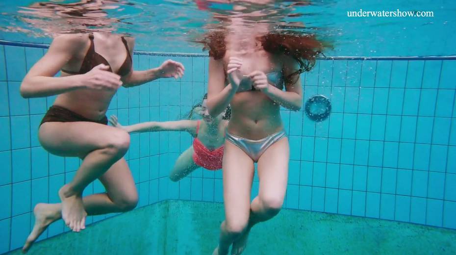 Nina Mohnatka and two ginger babes undress under the water