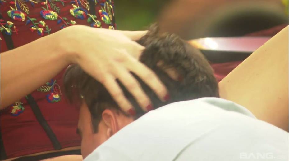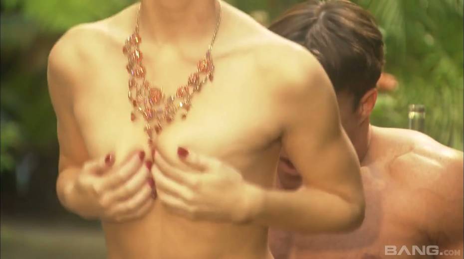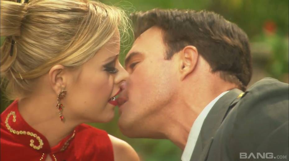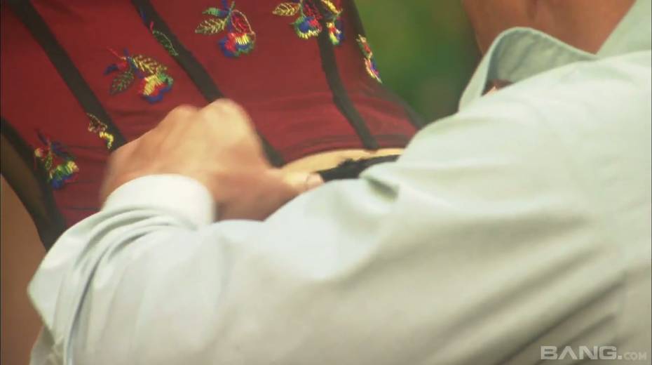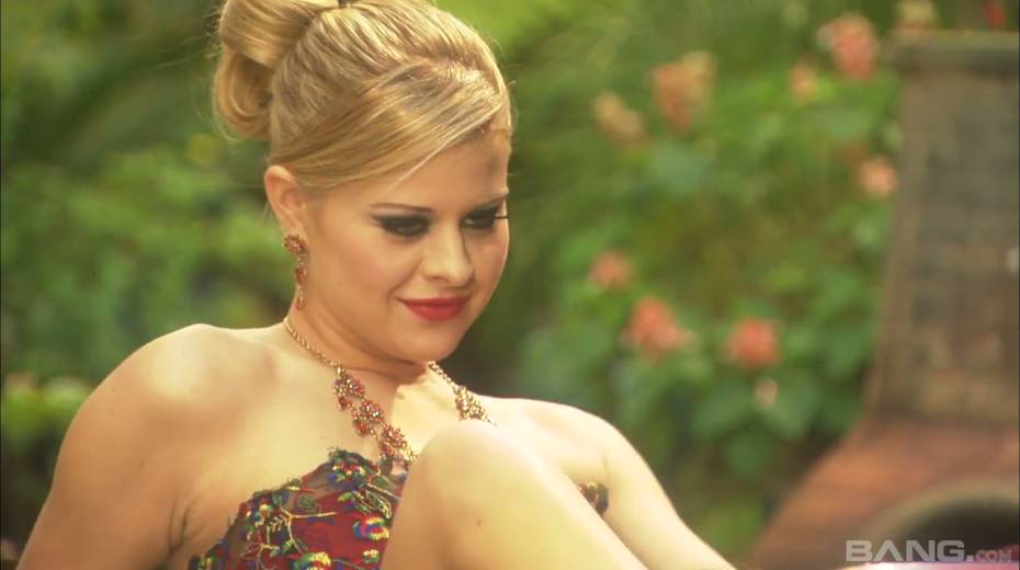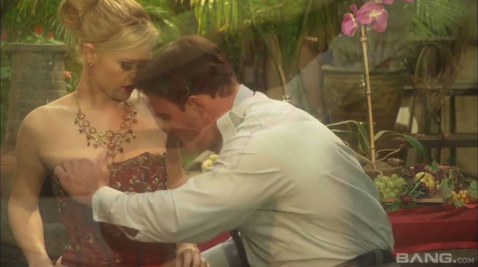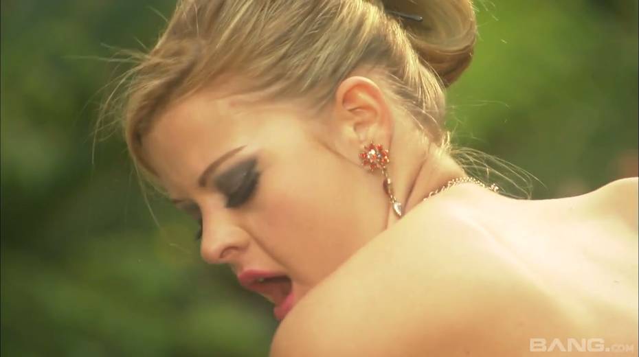 Passionate and romantic sex with sexy blonde Syvette in the garden