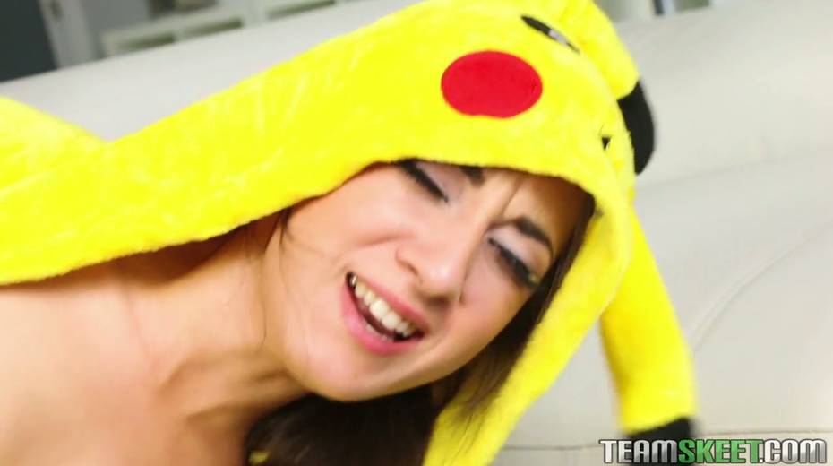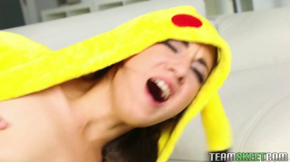 Petite chick in pajamas Freya Von Doom is impaled on a huge cock