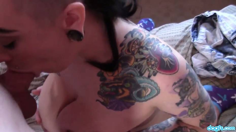 Juggy tattooed harlot Scarlet Lavey gives best ever titjob and blowjob