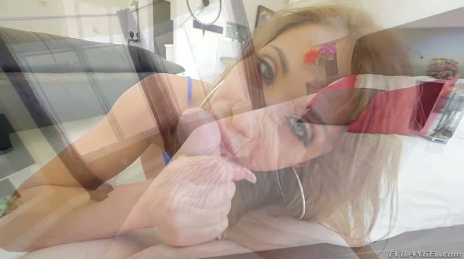 Horny babe in sexy dress Rita Rush sucks juicy dick and makes dude happy