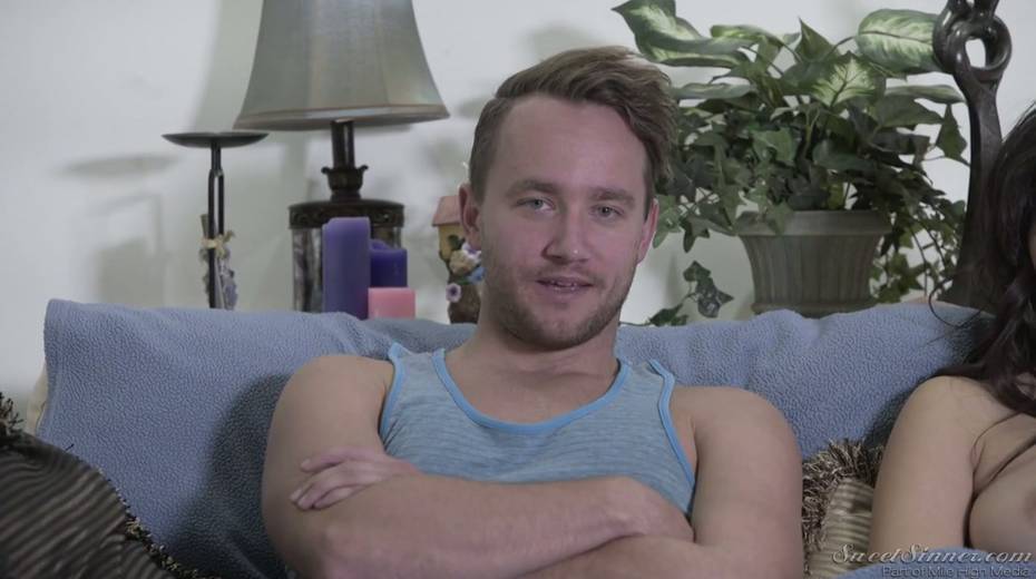 Brunette hottie Valentina Nappi gives interview before threesome scene