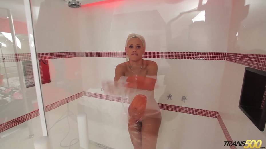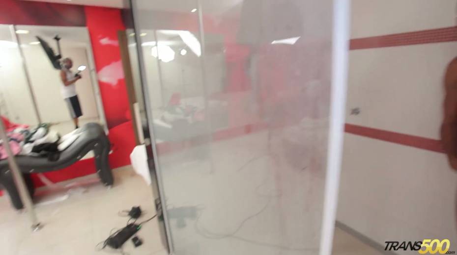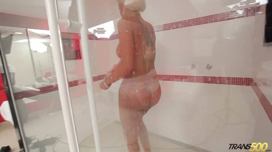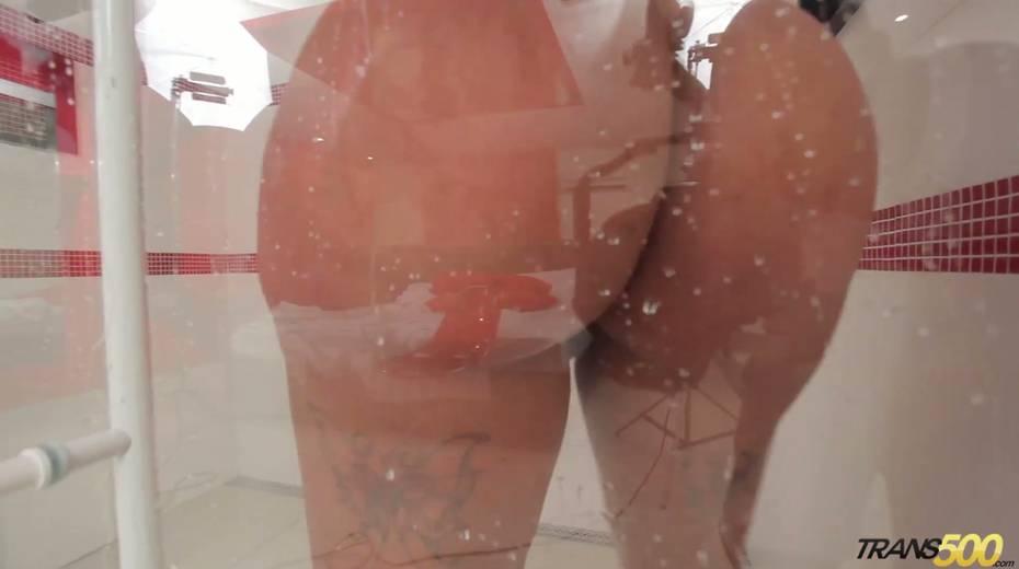Horny shemale Rafaella Ferrari shows off her juicy ass and fake tits