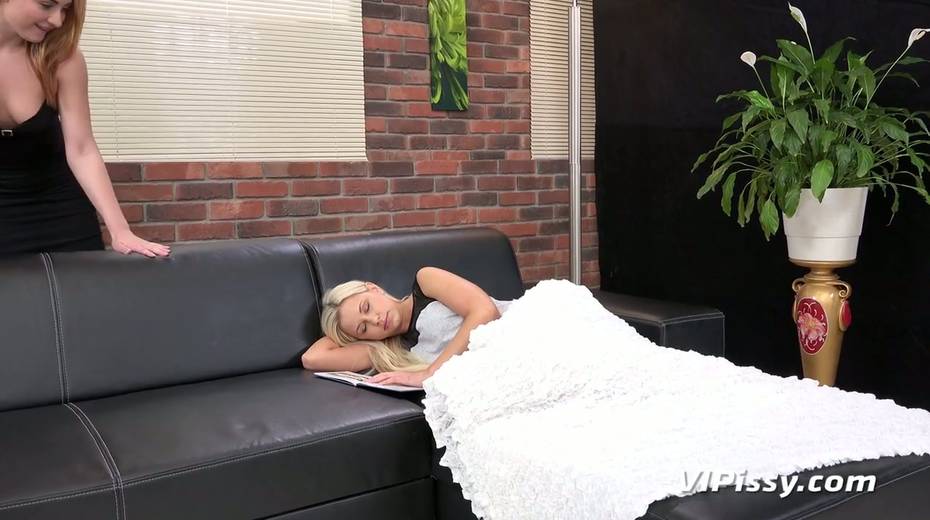 Red head Eva Berger pisses on her sleeping blond girlfriend and they make love