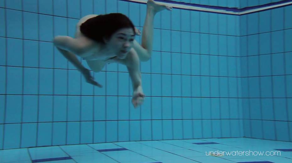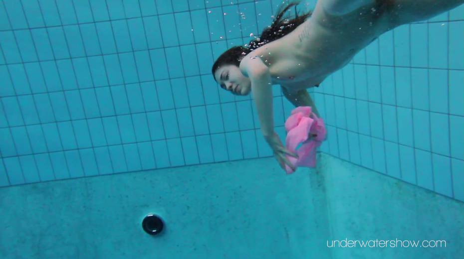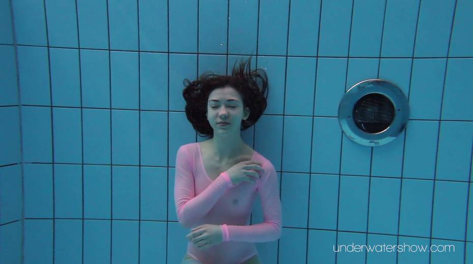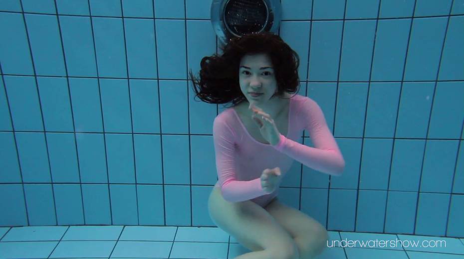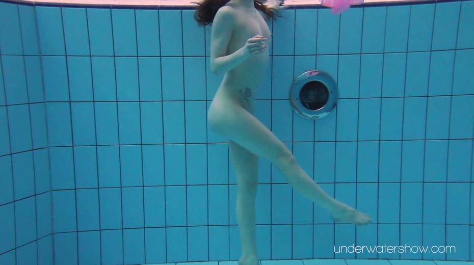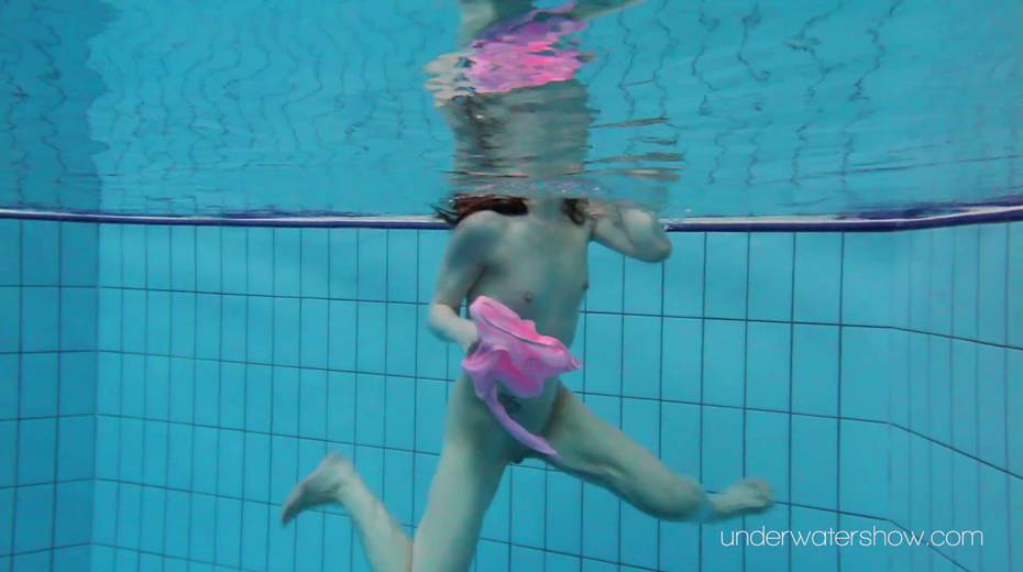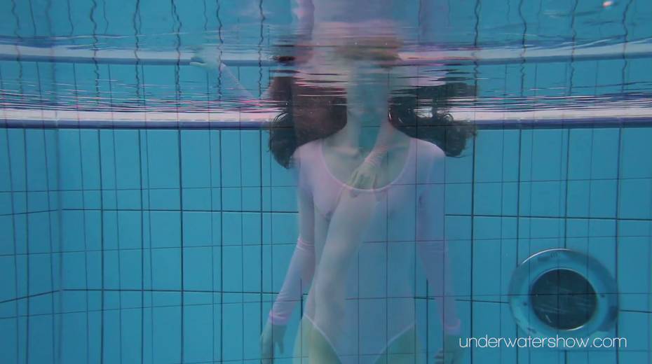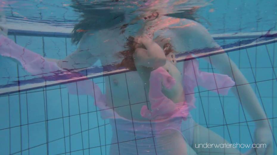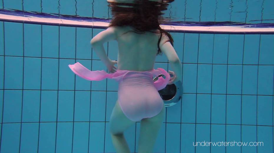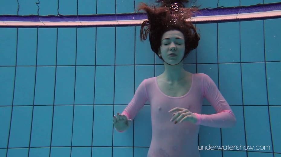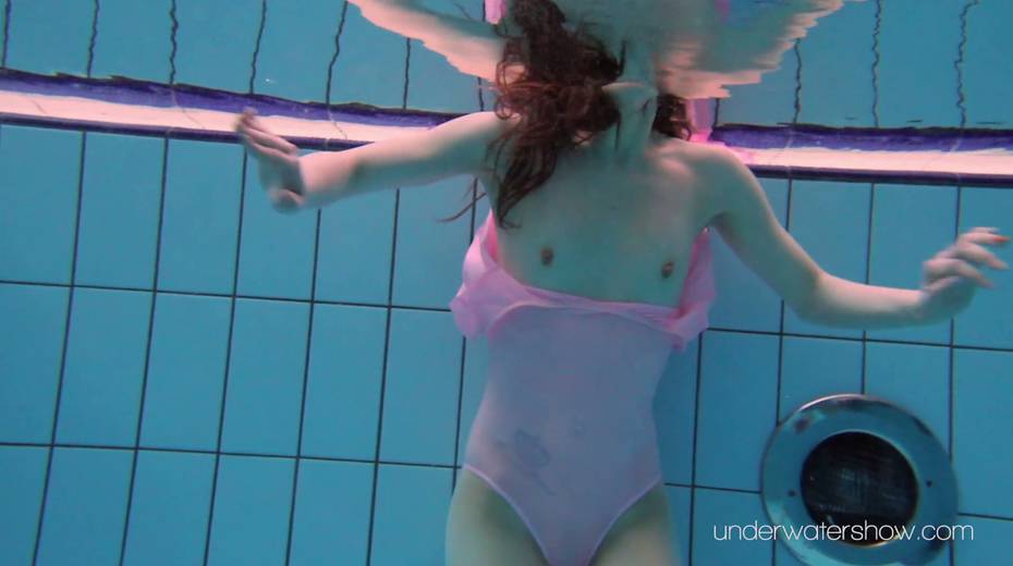 Sexy red haired swimming babe Roxalana Cheh is stripping under the water