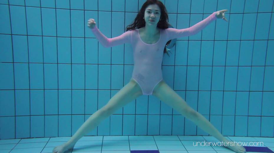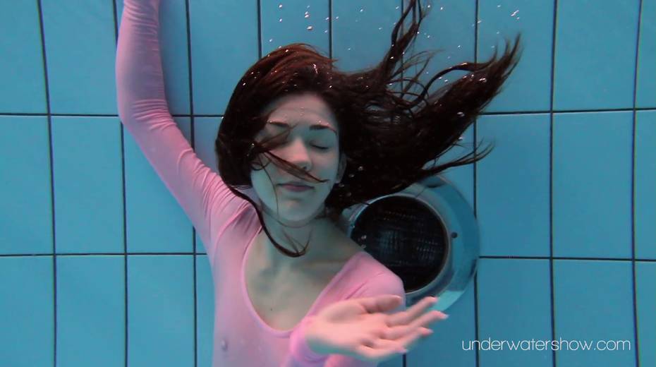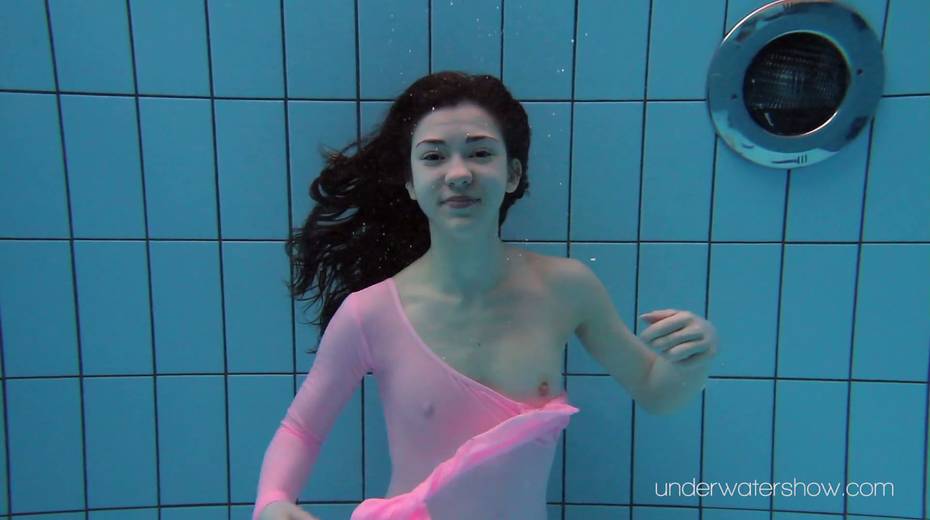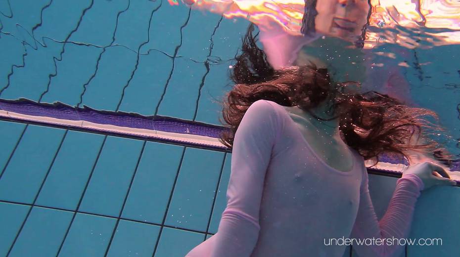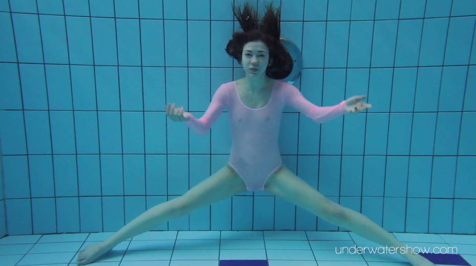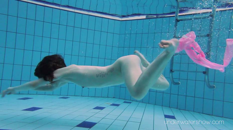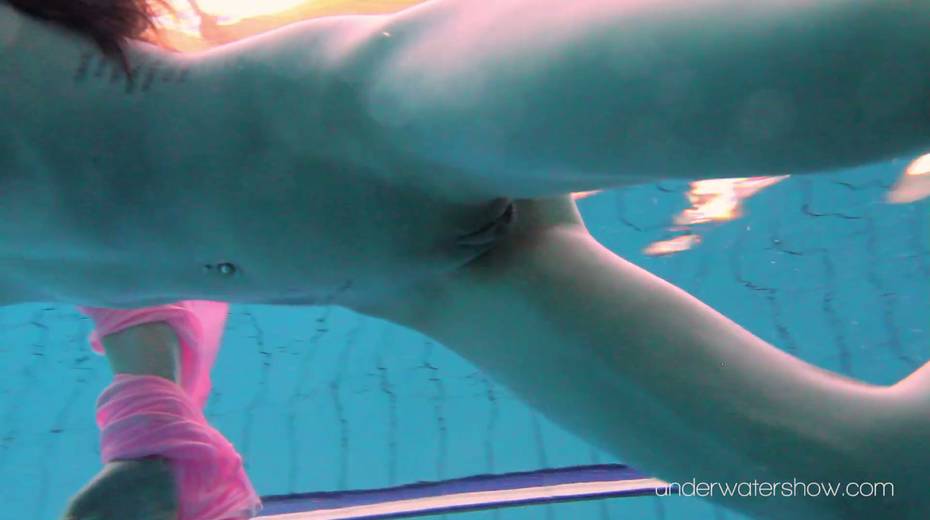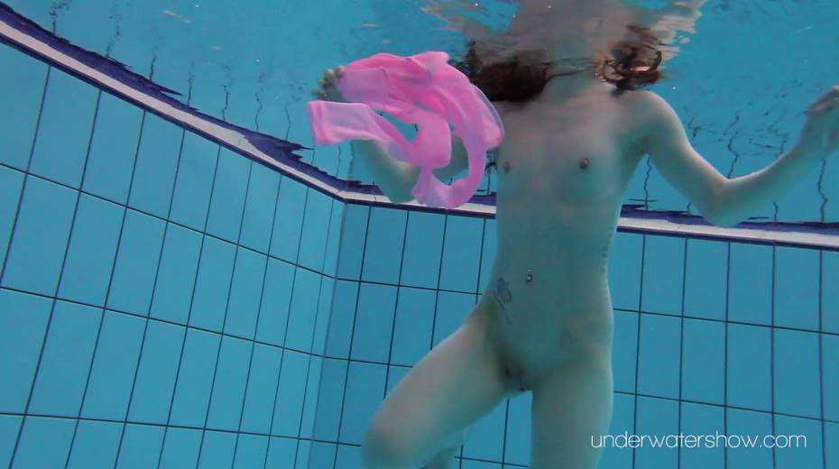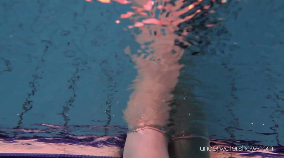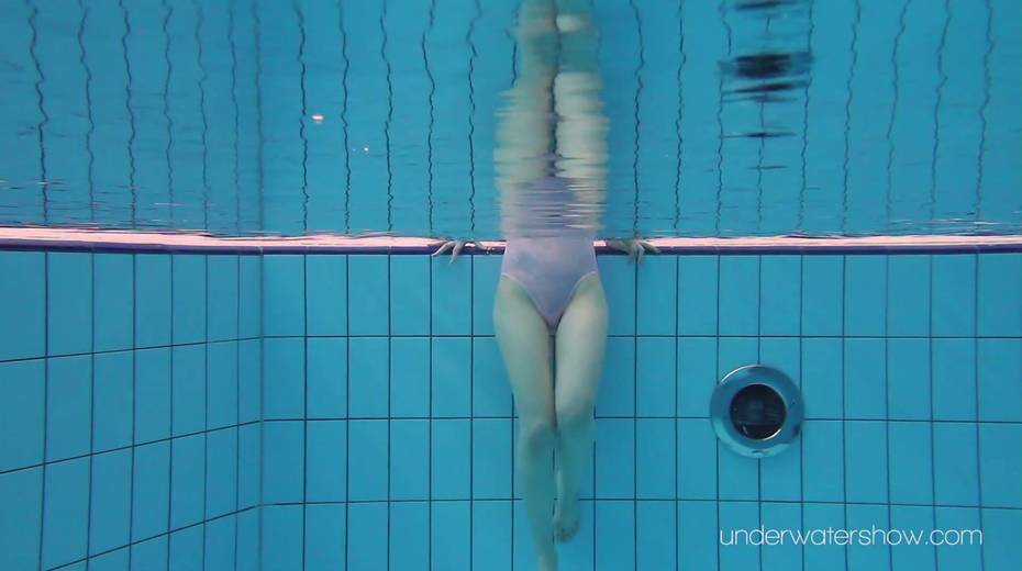 Sexy red haired swimming babe Roxalana Cheh is stripping under the water