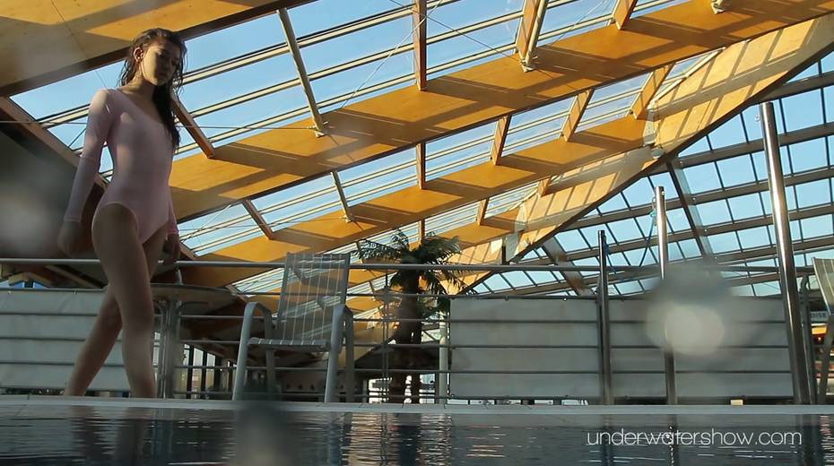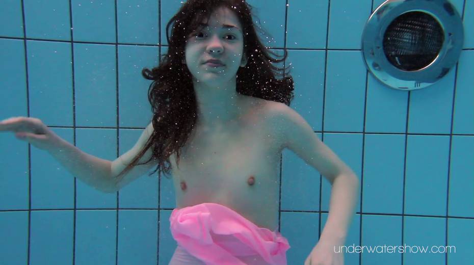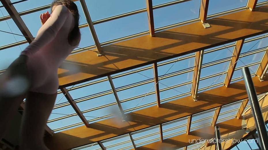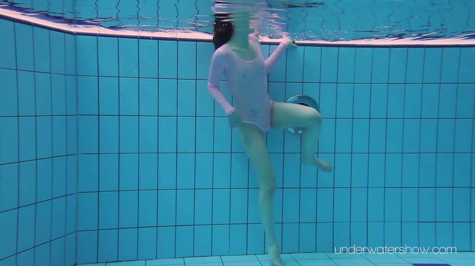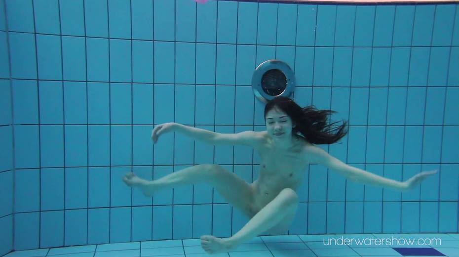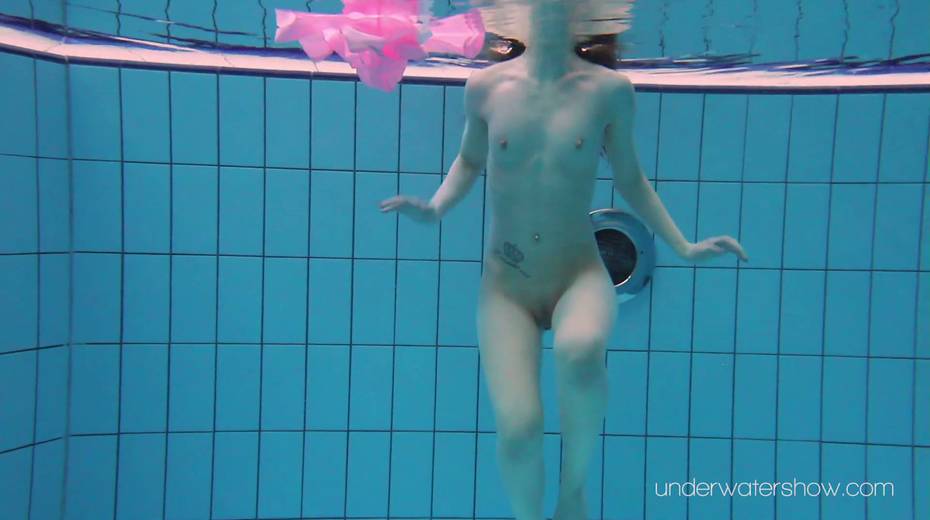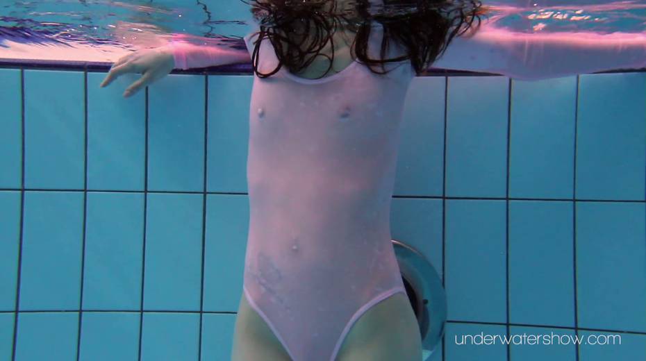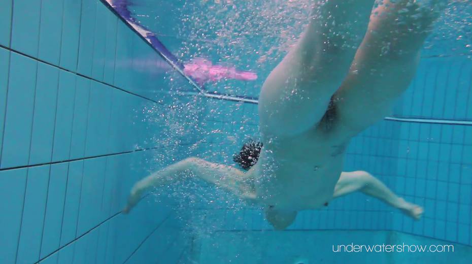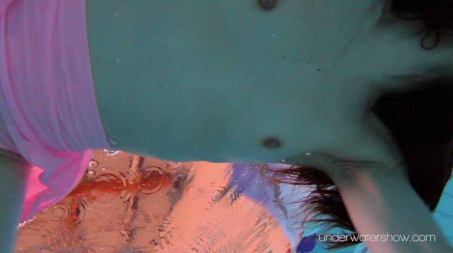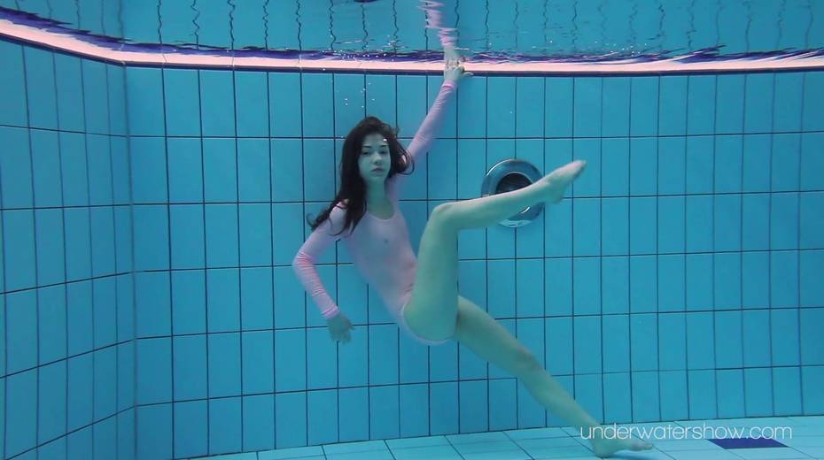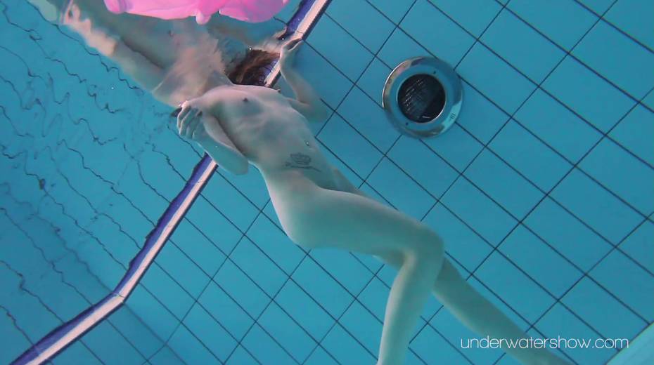 Sexy red haired swimming babe Roxalana Cheh is stripping under the water