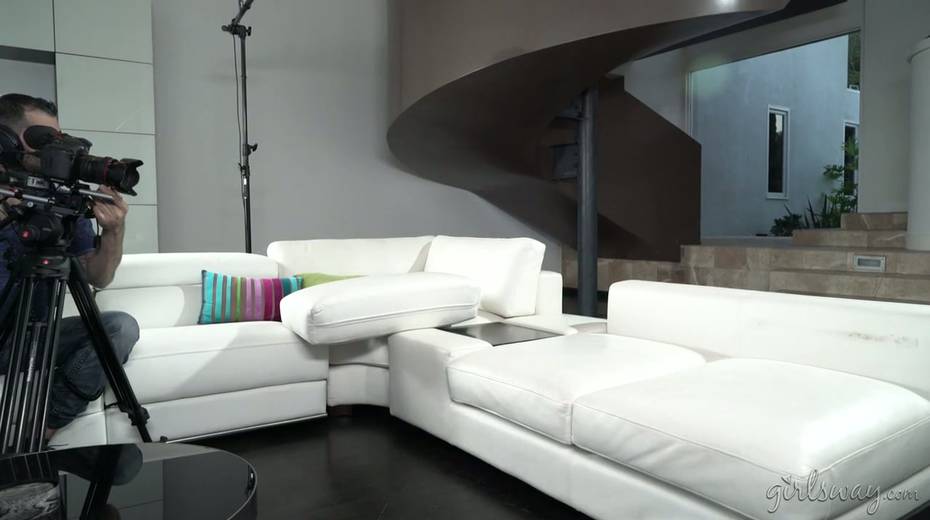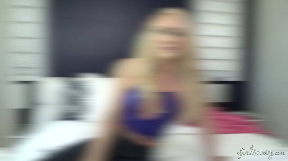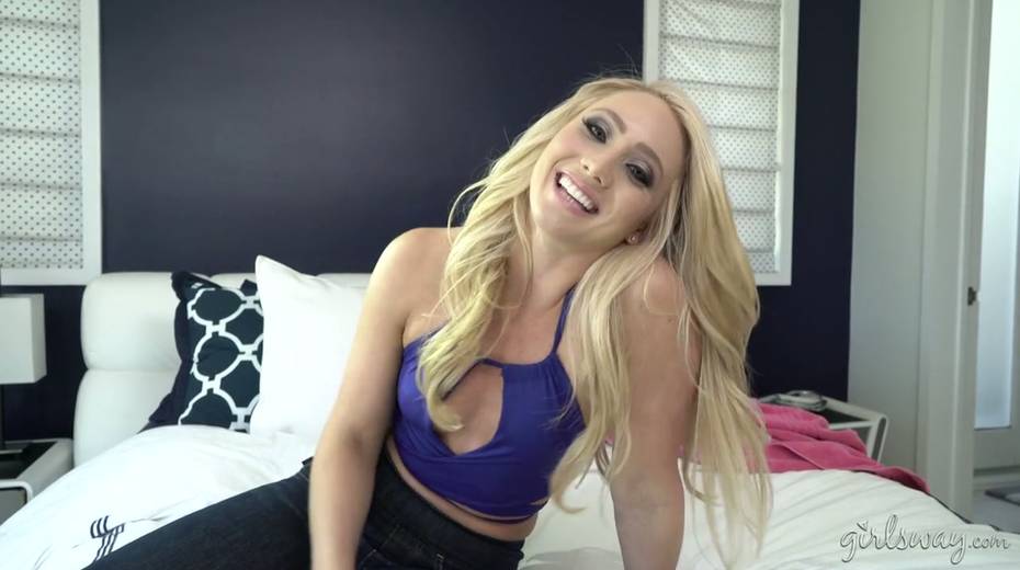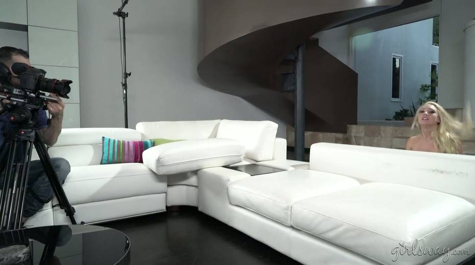 Hot blooded blonde AJ Applegate gives an interview after hot lesbian scene