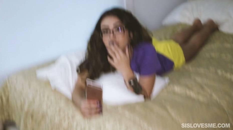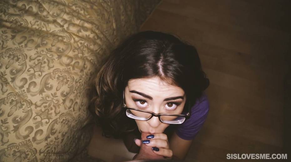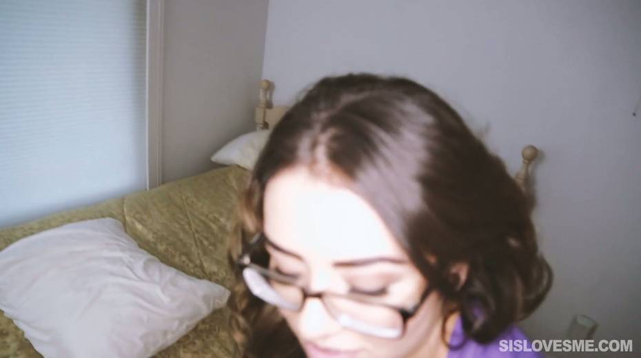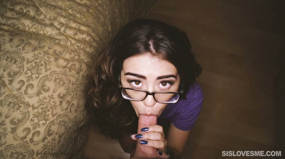 Sexy stepsister in glasses Amina gets a mouthful of cum