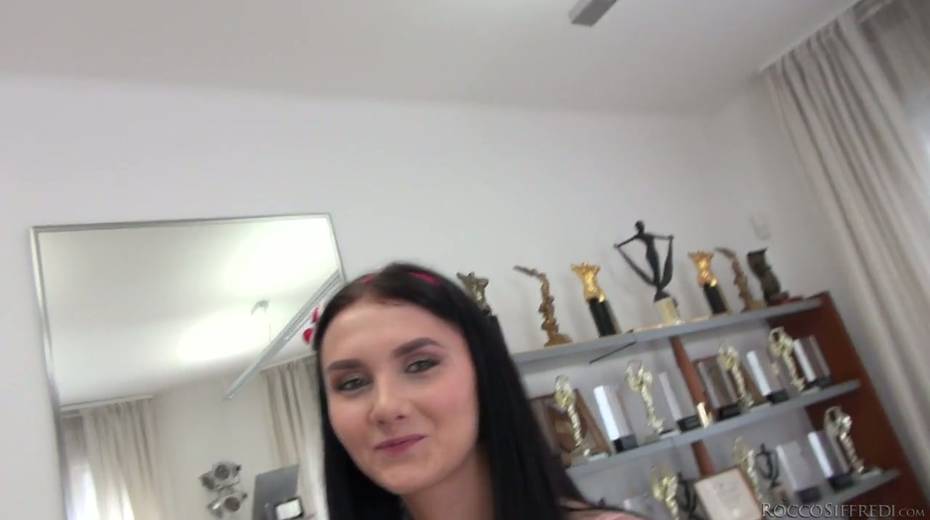 Cute brunette Crystal Greenvelle shows her pierced nipples and gets her anus rammed