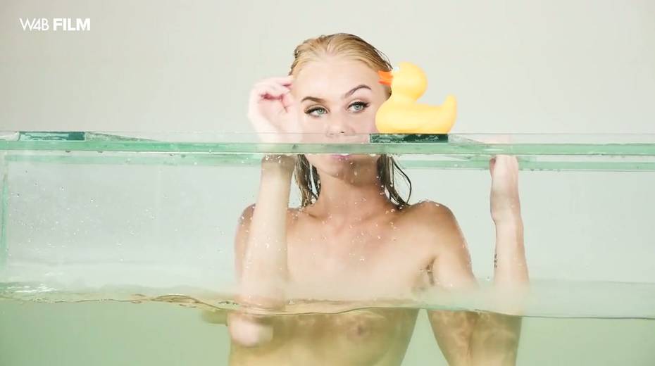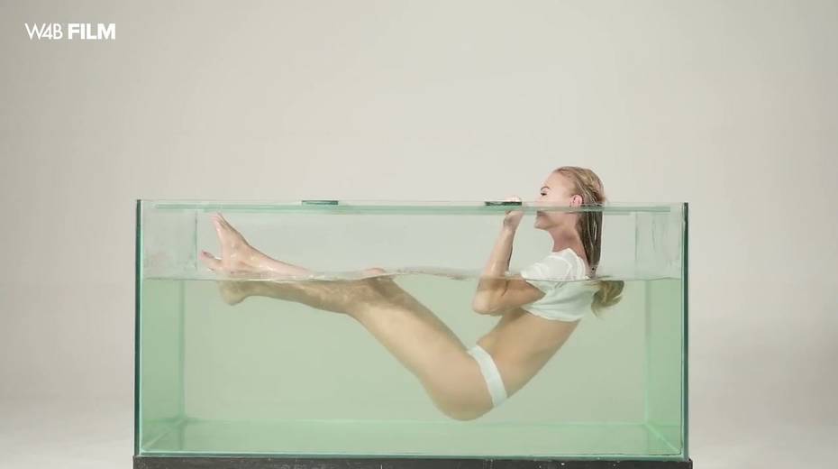 Sexy mermaid Nancy is masturbating her pussy in aquarium