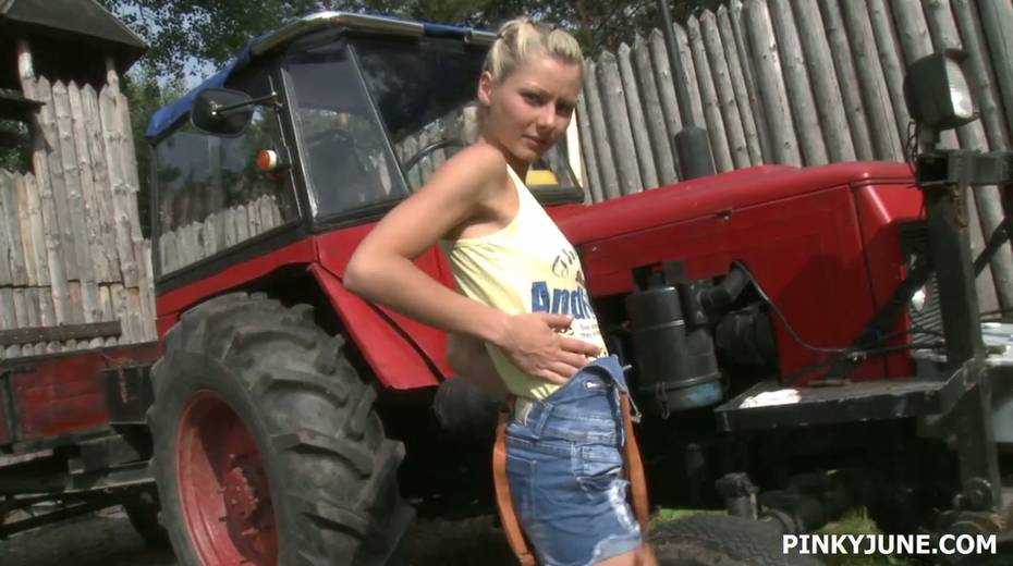 Spoiled hottie Pinky June is fucking herself in broad daylight