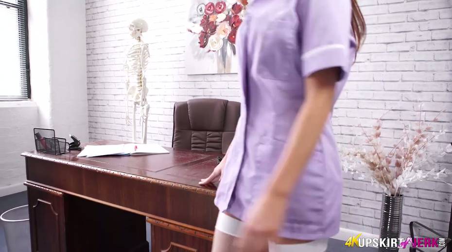 Beautiful young nurse Layla shows off her white panties and sweet looking pussy