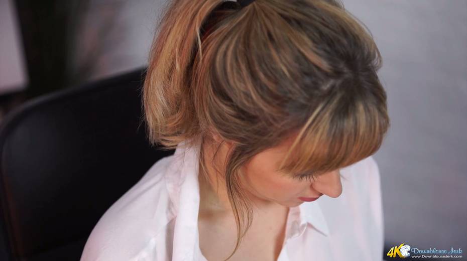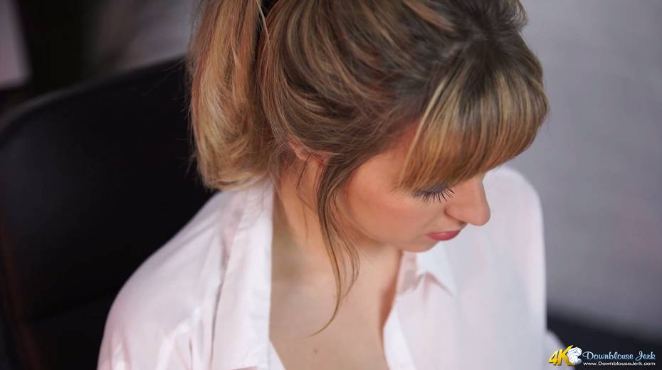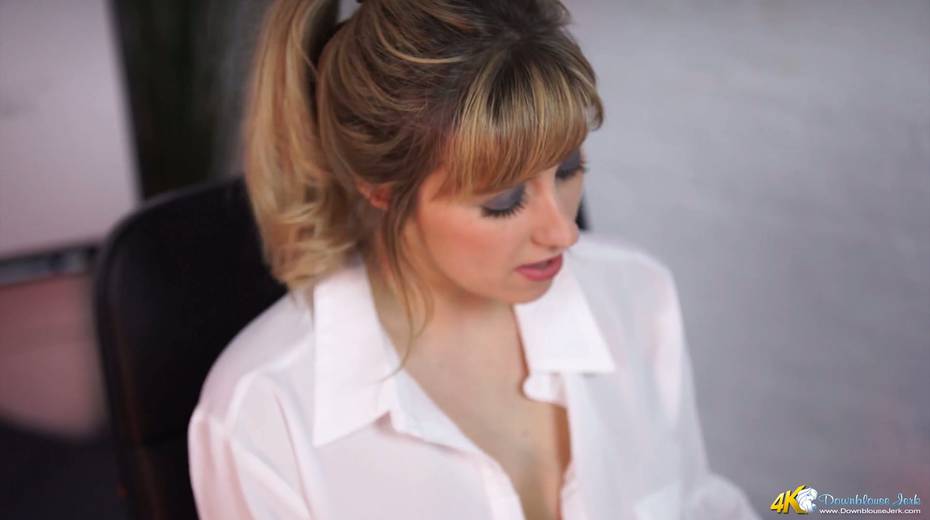 Big boobs of super sexy secretary babe Louise will drive your dick crazy