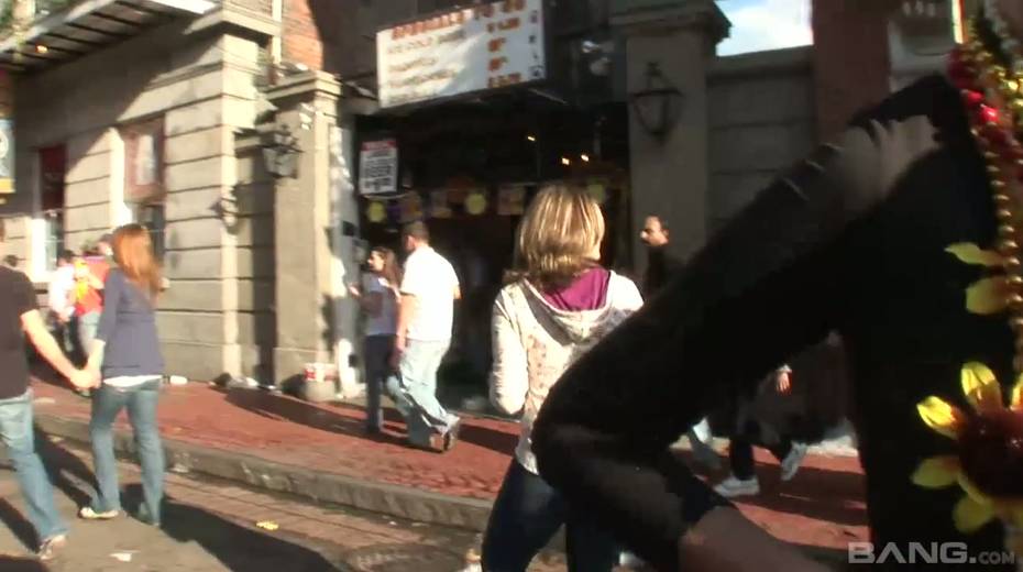 Lustful chicks are flashing their juicy natural boobs outdoor