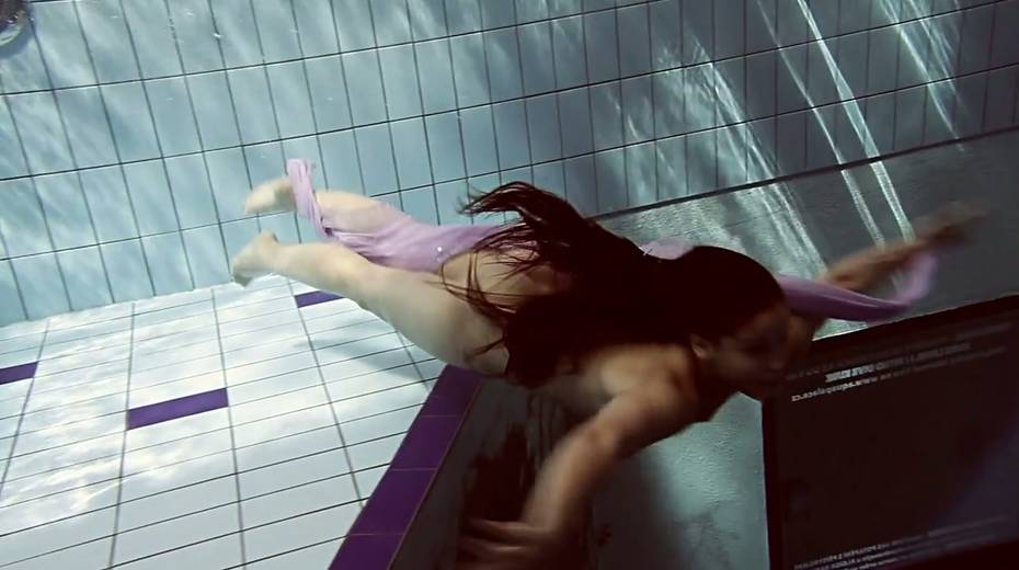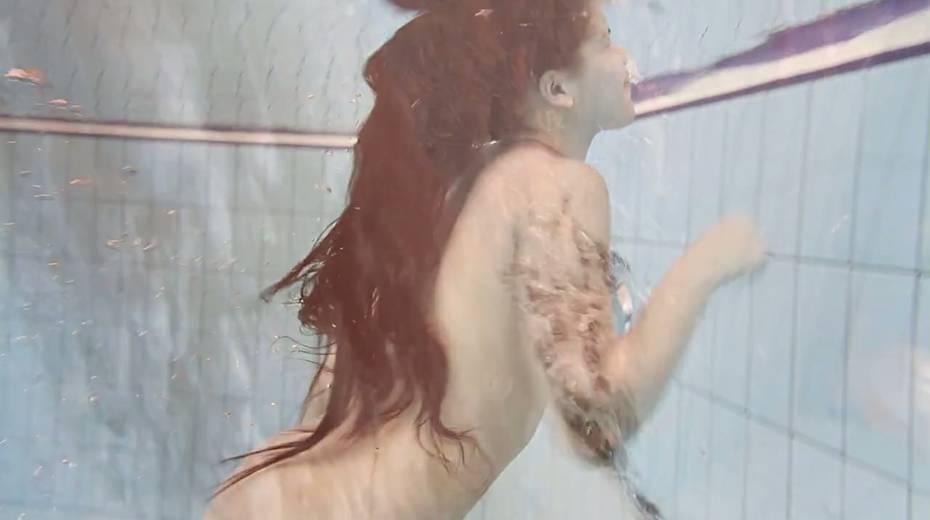 Charming curly babe Paulinka shows striptease under the water