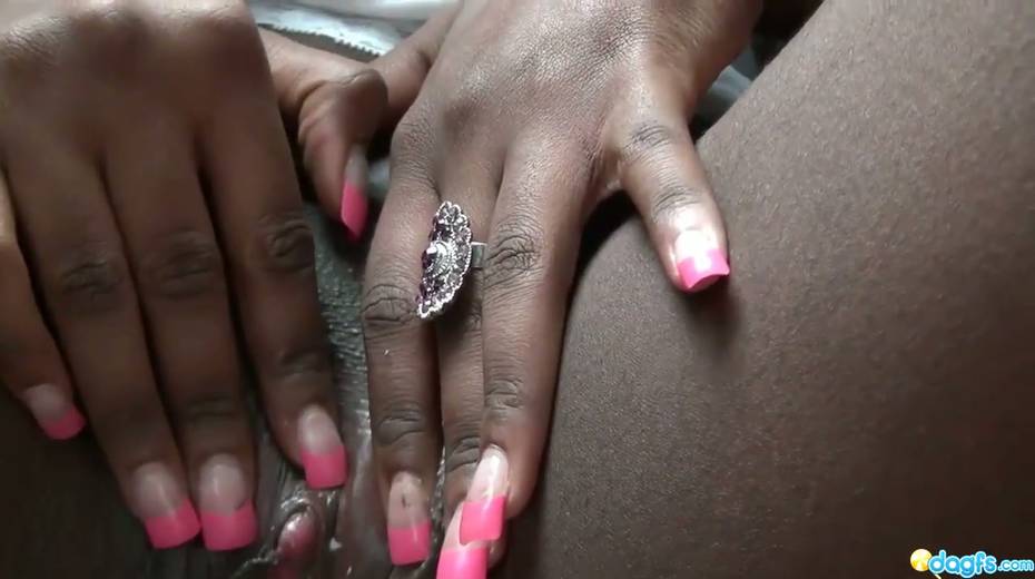 Kinky driver finger fucks pinkish slit of black harlot Tatiana Fox