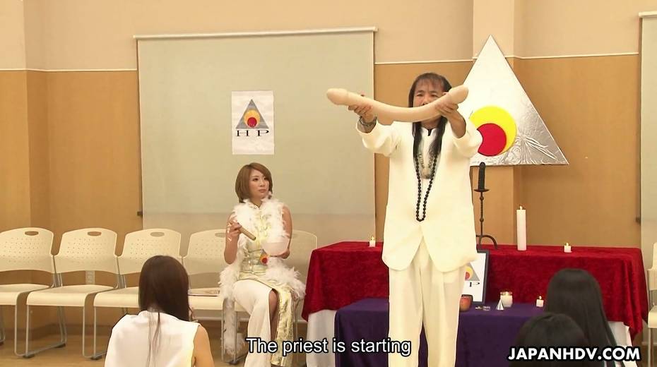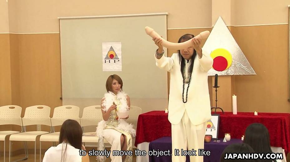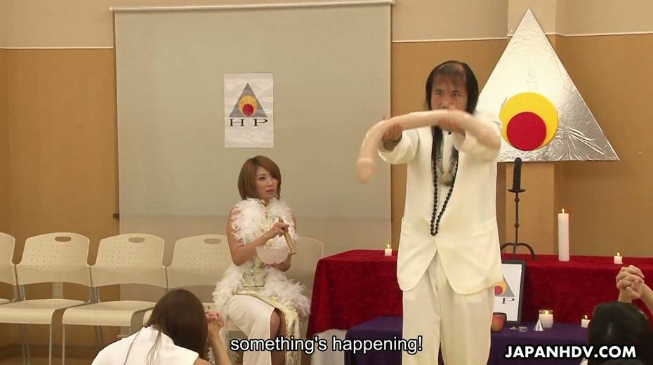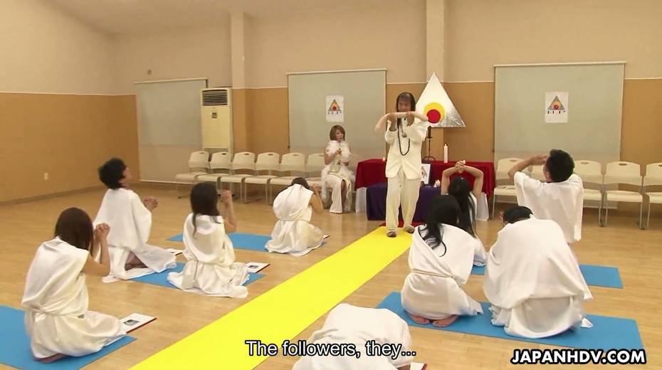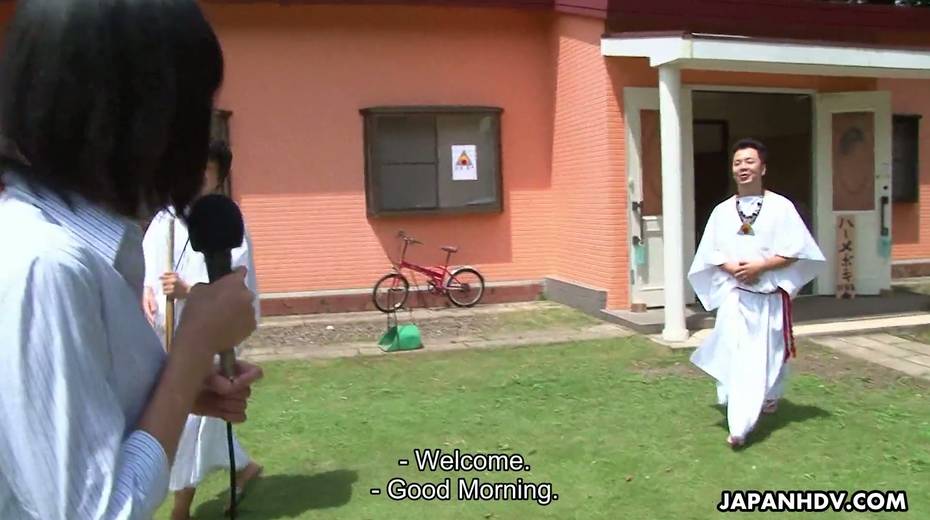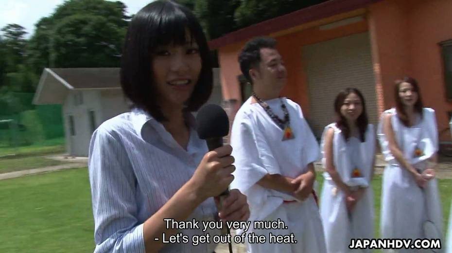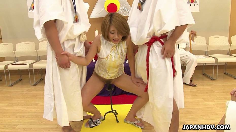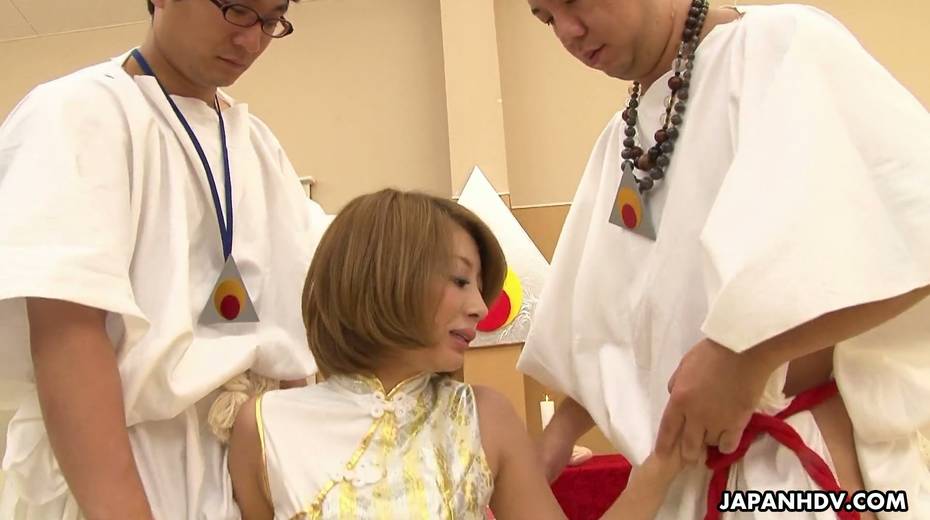 Beautiful Asian chick Yuka Sawakita gives blowjob to a duo of dudes