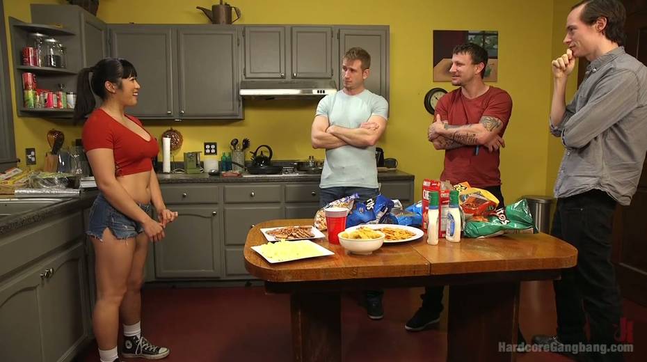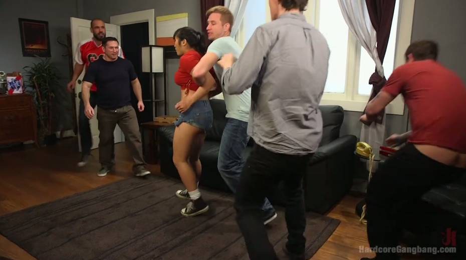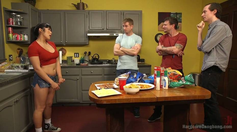 Fucking hot Asian harlot Mia Li is taking part in real hardcore gangbang