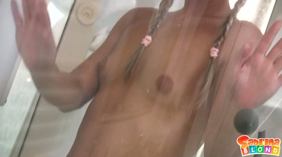 Sweet looking babe with pierced navel Sabrina Blond is toying herself