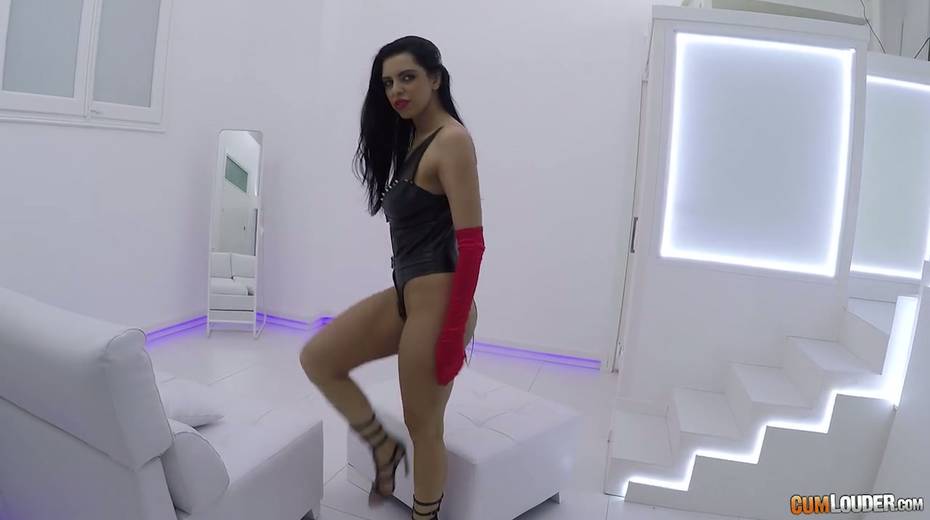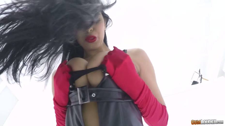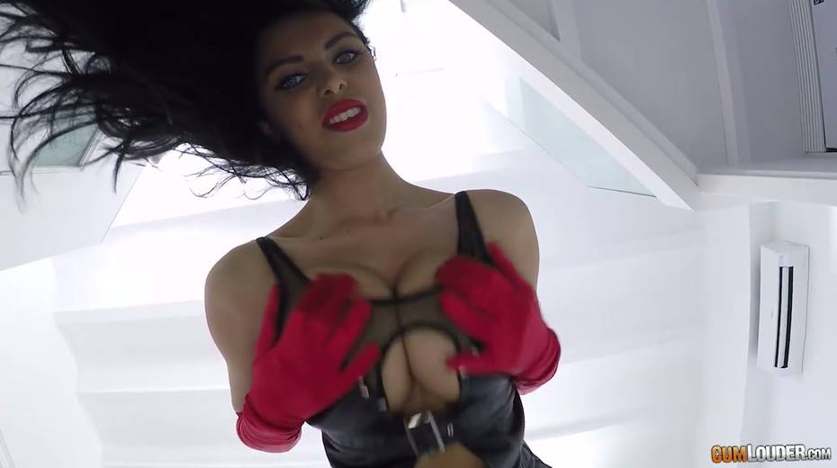 Seductive hottie in latex corset and gloves Kira Queen is masturbating her pussy