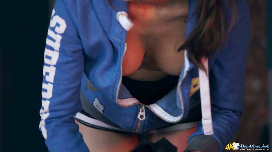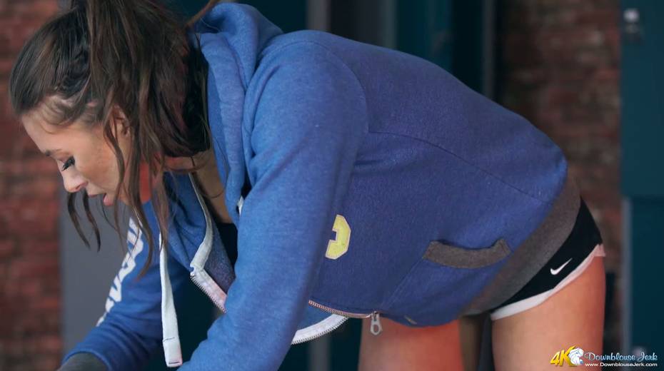Big tittied babe Jemma shows off her juicy ripe boobies in the locker room