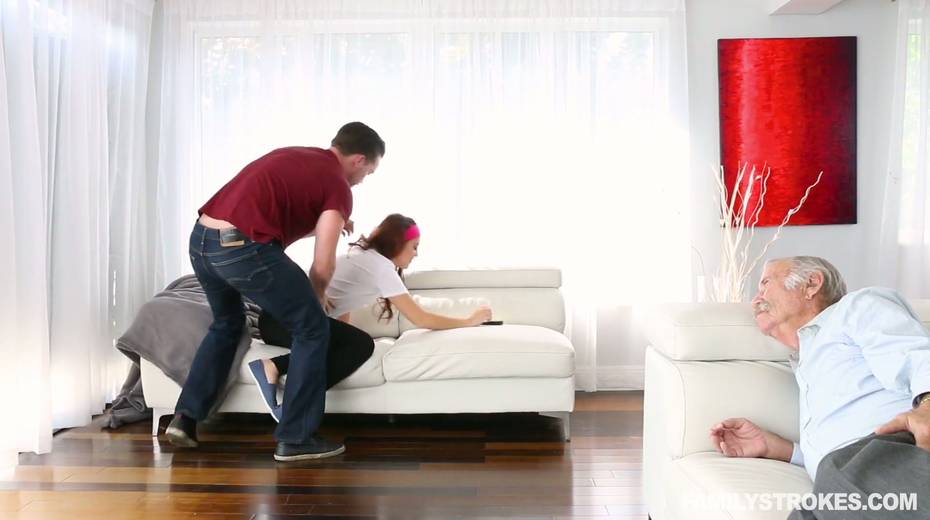 Spoiled teen Brooke Haze is getting her pussy rammed in the presence of sleeping grandpa