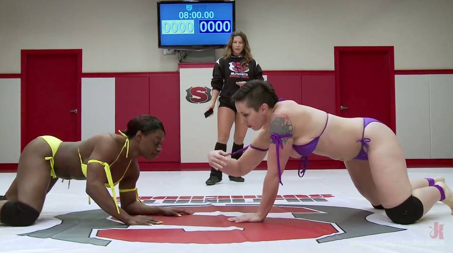 Female bodybuilder Kelli Provocateur is fucked by one strong white bitch