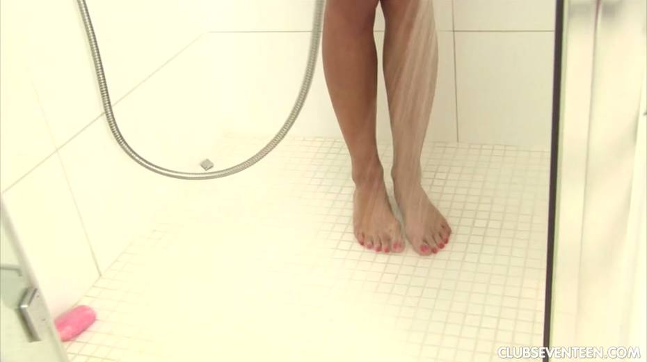 Charming creation Lady D is taking a shower and playing with her pinkish slit