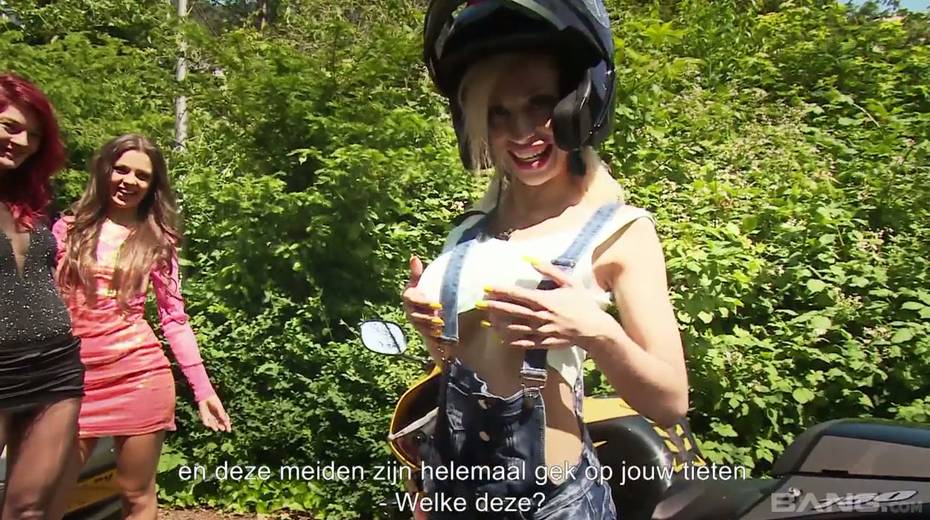 Slut Chessie Kay and her crazy girlfriends are testing sex toys outdoor