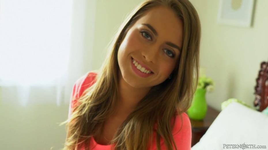 Sex-appeal porn model Liza Rowe gives an interview after hot pussy fuck scene