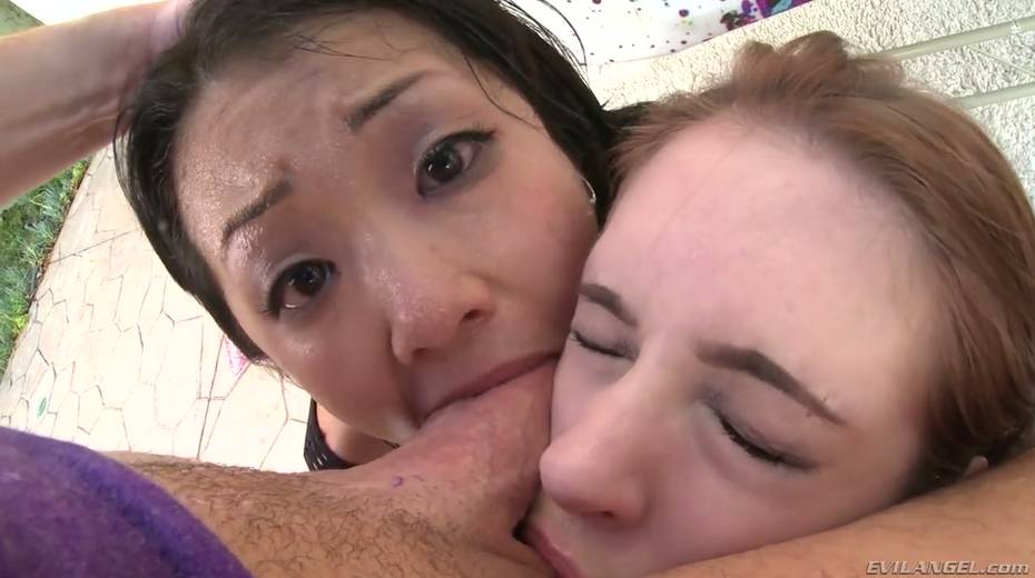 Asian chick Saya Song licks gaped anus of nasty GF and enjoys cum swapping
