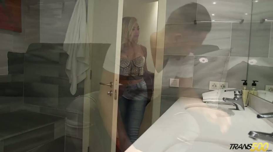 Trashy looking ladyboy Rayssa Barbie gets her anus rammed doggy style