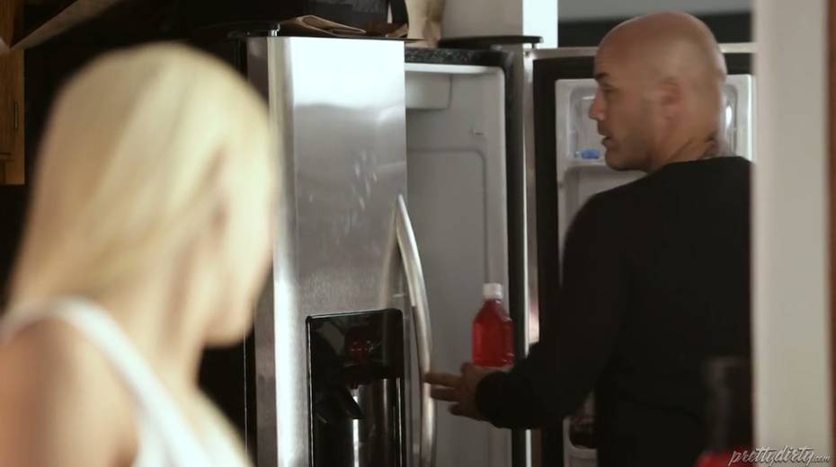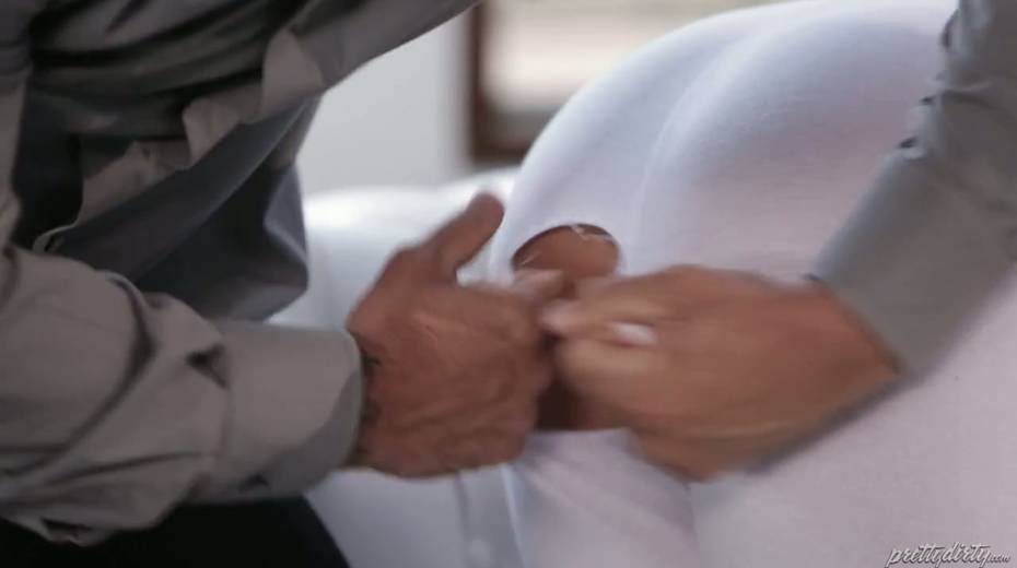 Hot blooded bald headed dude fucks blonde in ripped yoga pants Kenzie Taylor